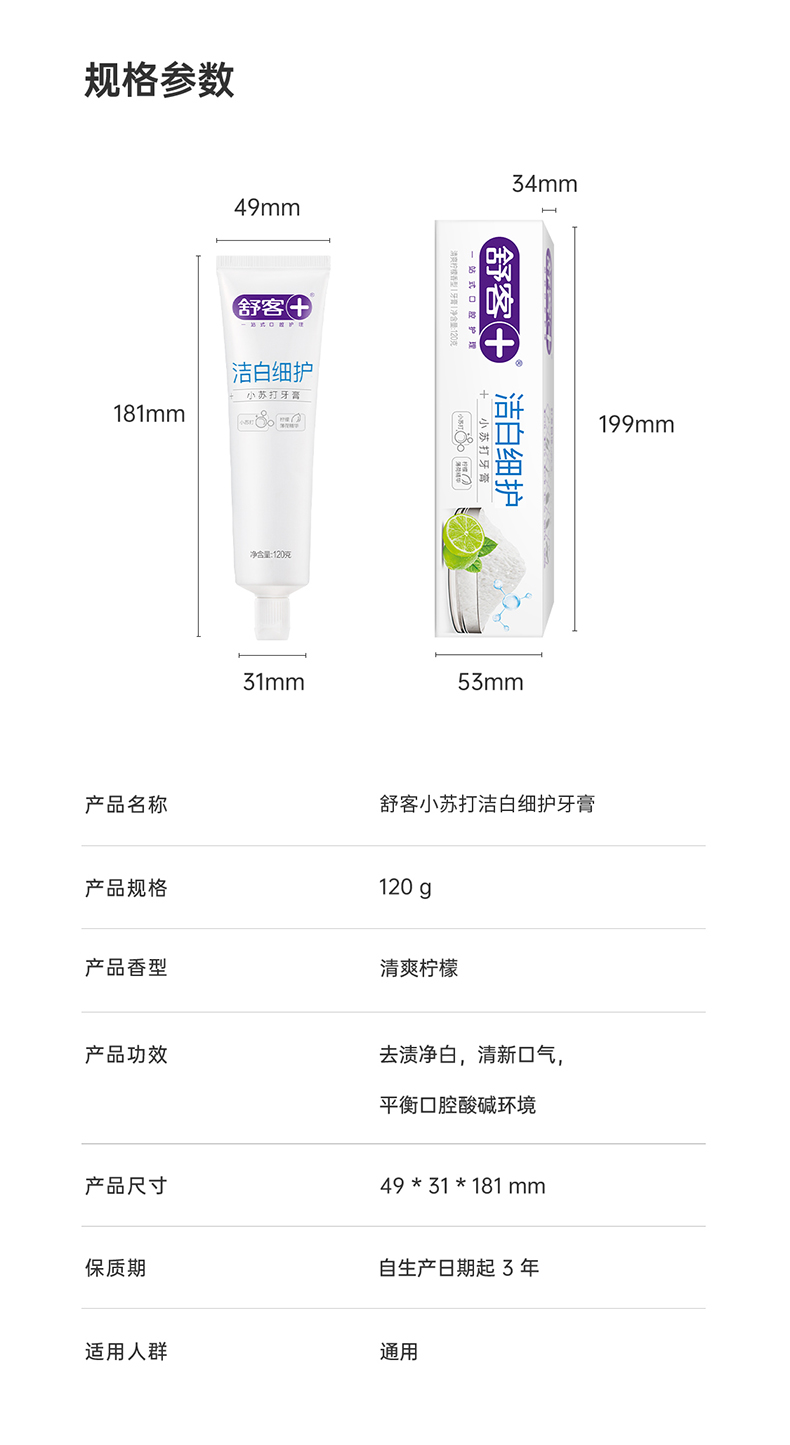 【内购专享】舒客小苏打牙膏(洁白细护)120克*1 随机赠送健齿先锋牙刷2支