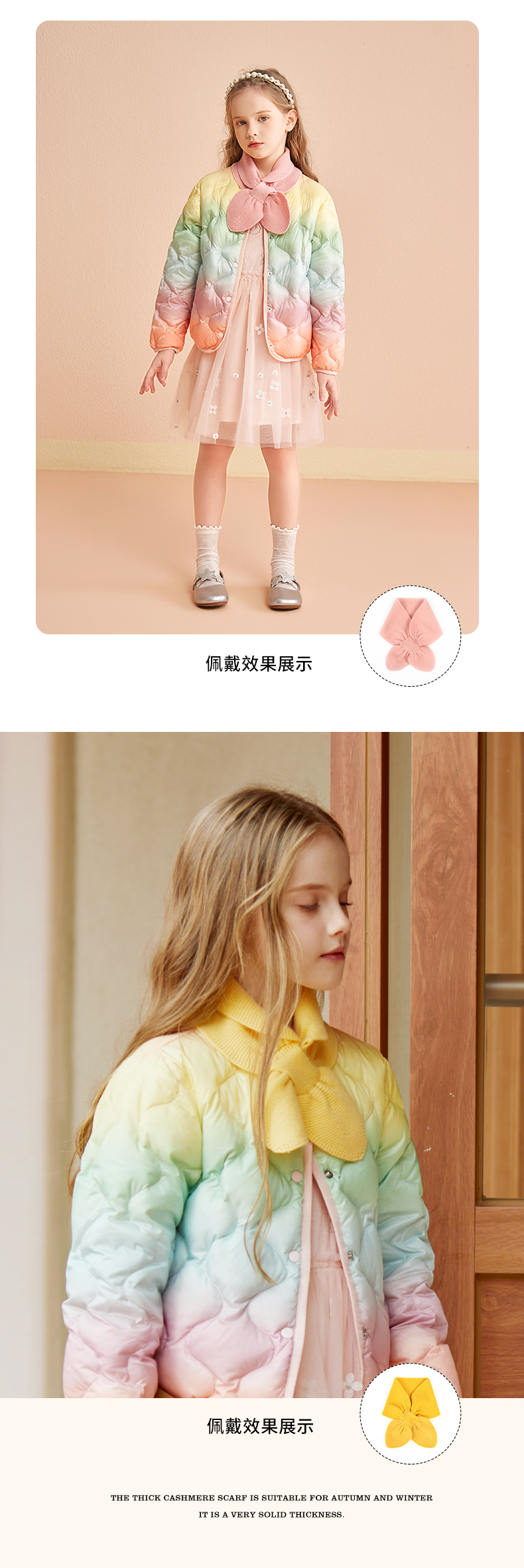 mettekids儿童羊绒围巾秋冬新款男女童宝宝可爱洋气防风交叉围脖