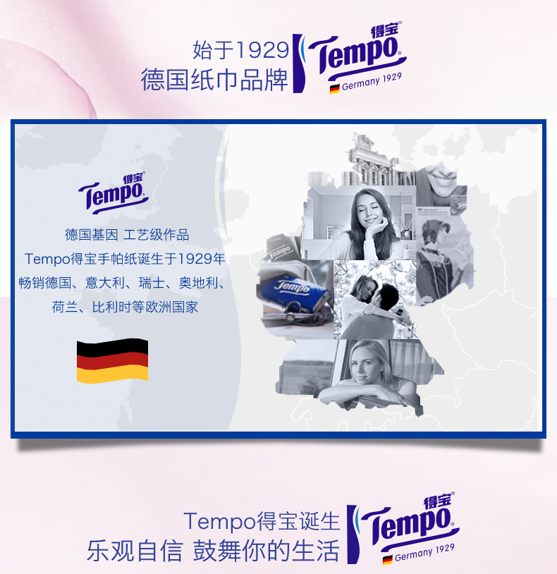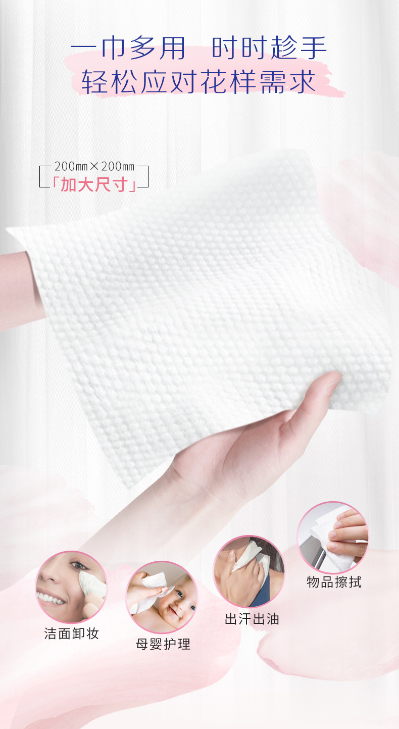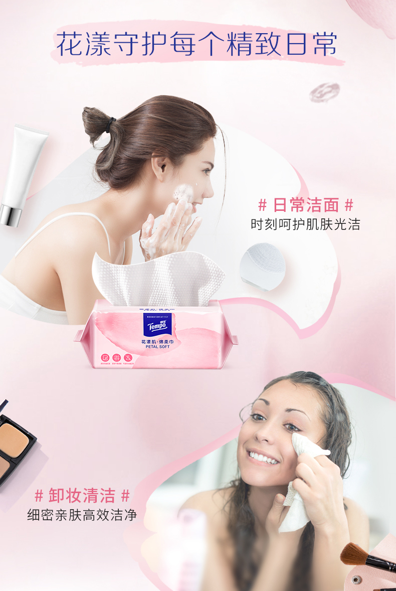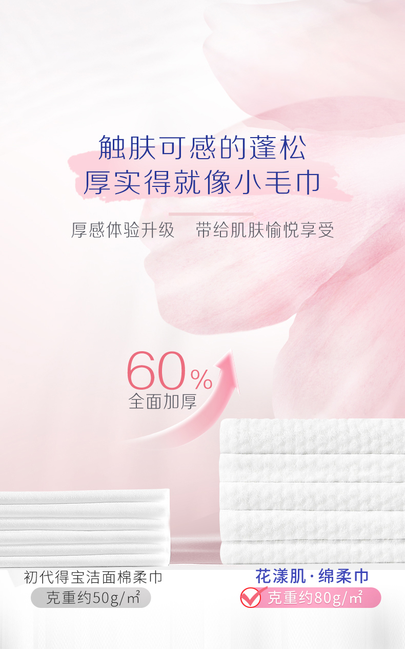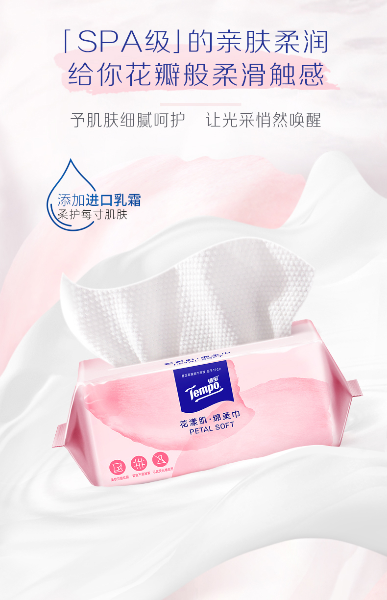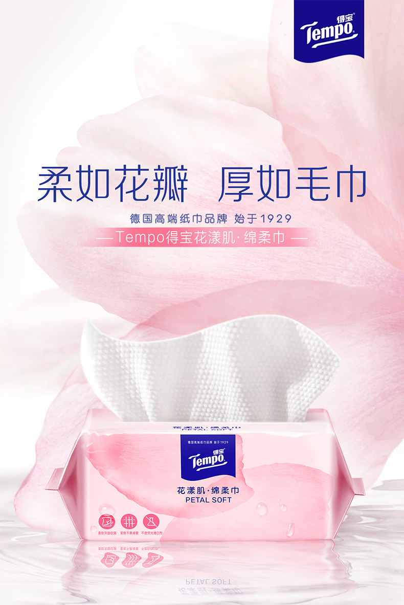 『得宝Tempo』花漾肌单层抽取式绵柔巾70抽*1包 厚实亲肤不掉屑