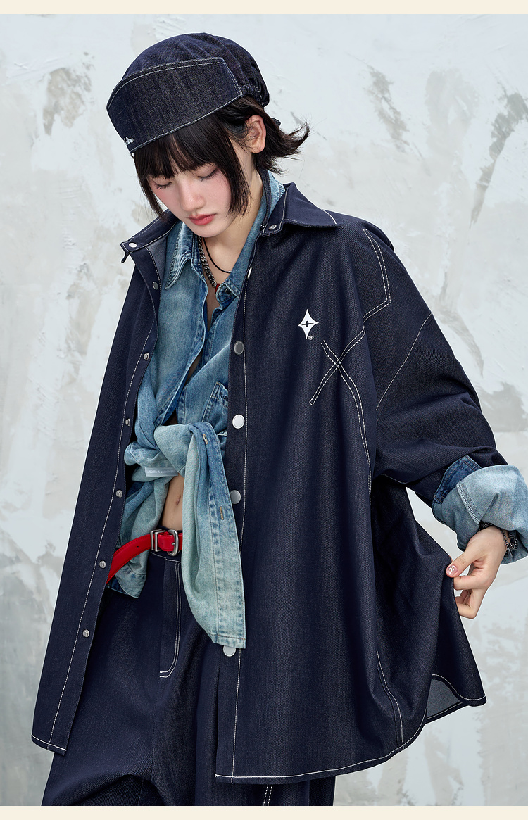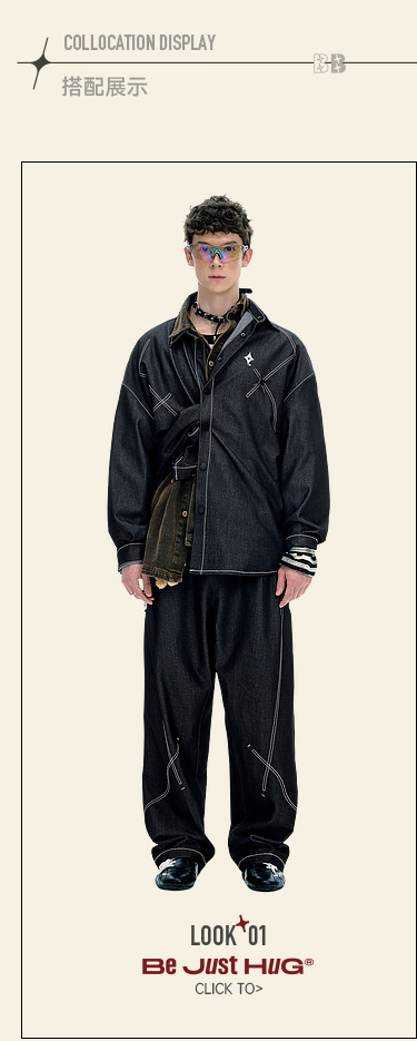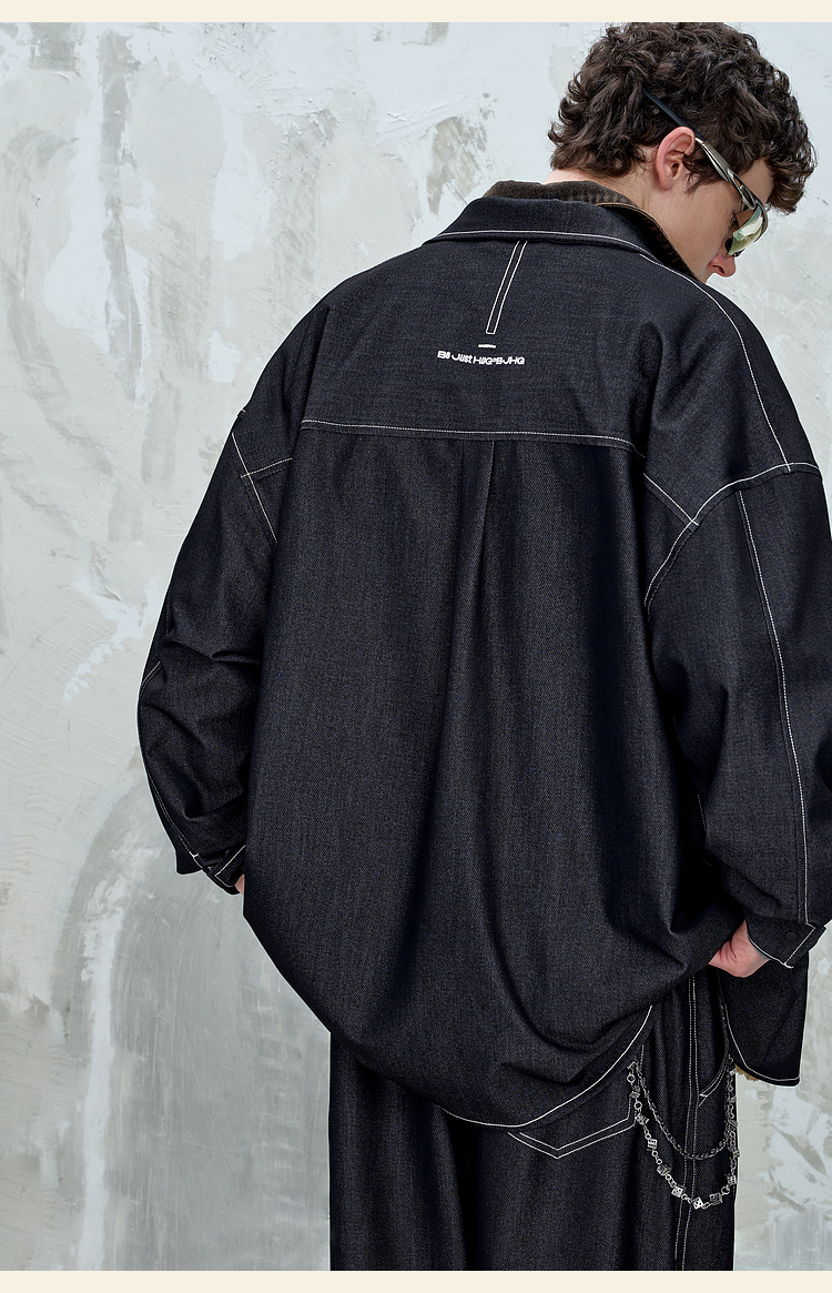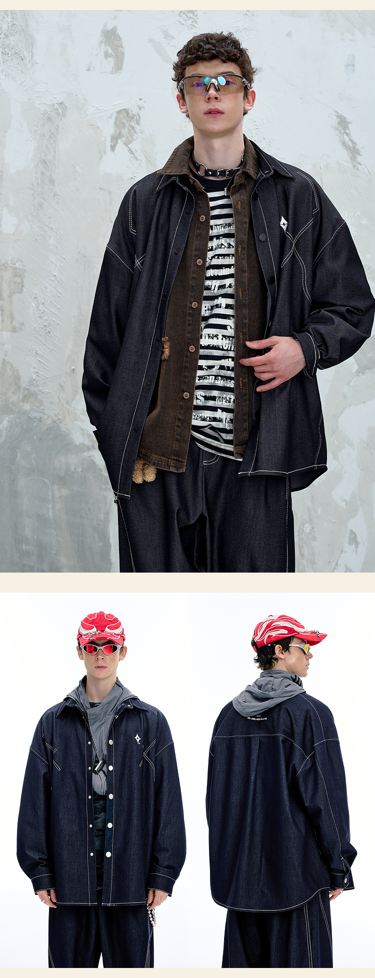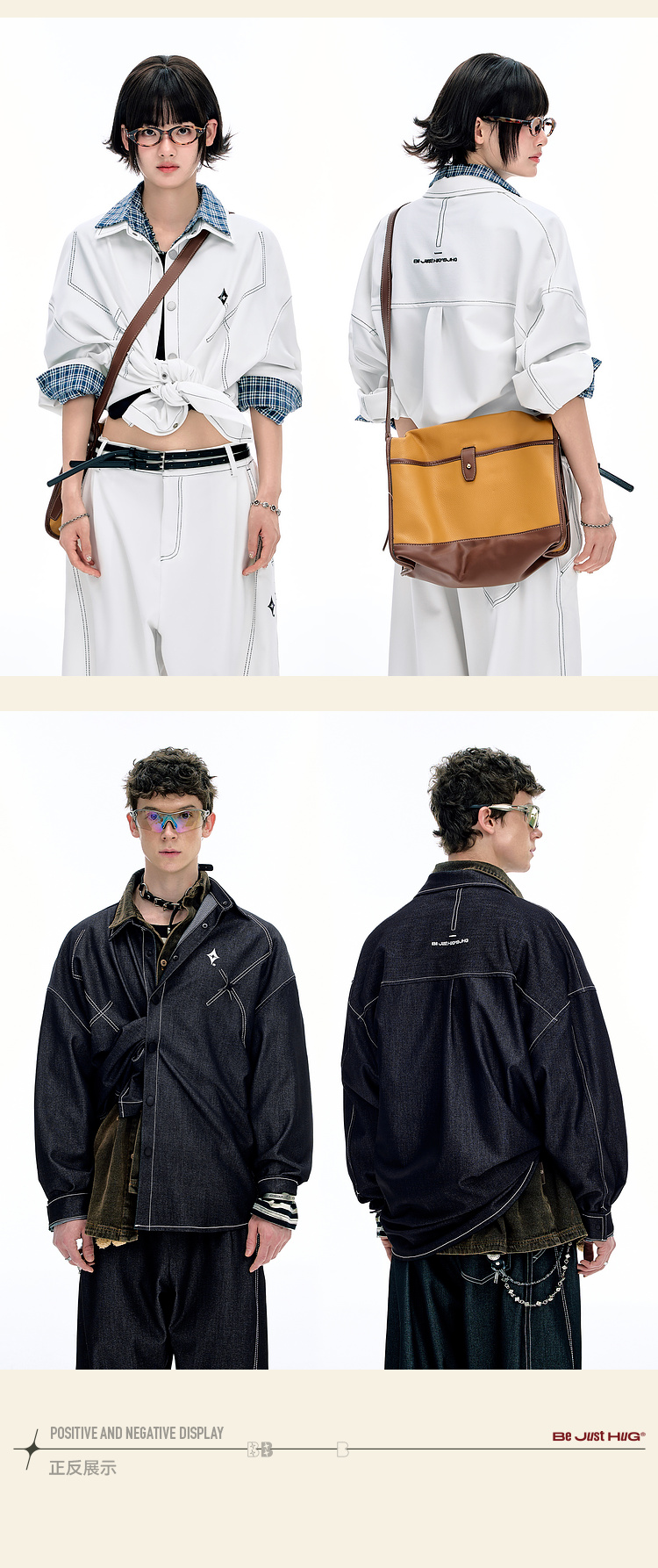 BJHG不计后果仿牛仔衬衫外套男款夏慵懒松弛感情侣套装衬衣外套女