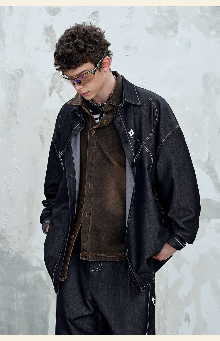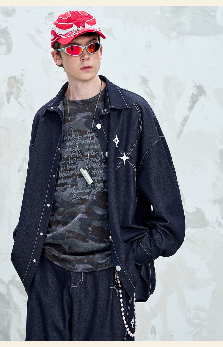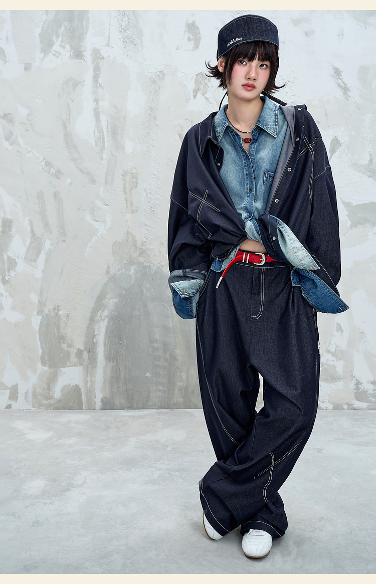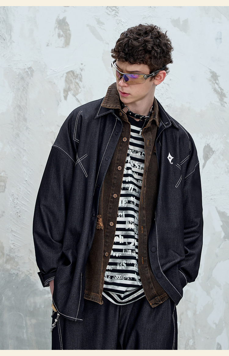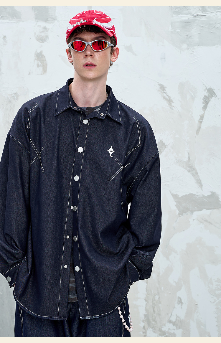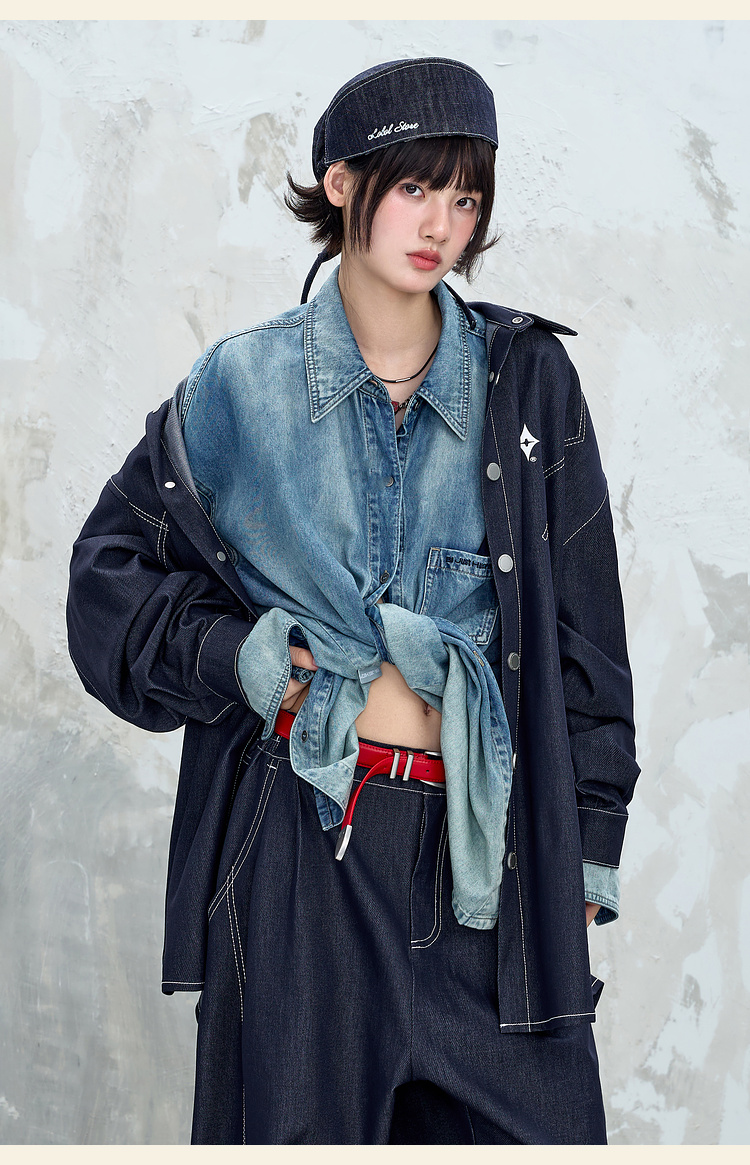 BJHG不计后果仿牛仔衬衫外套男款夏慵懒松弛感情侣套装衬衣外套女