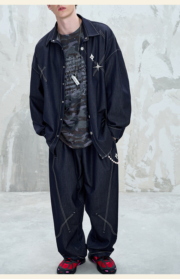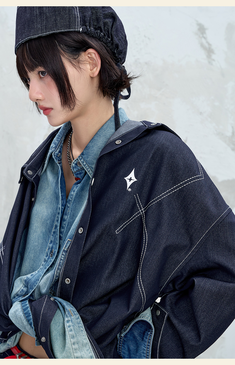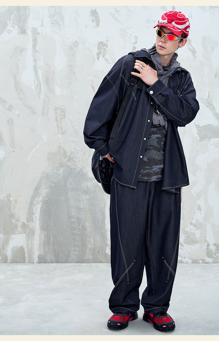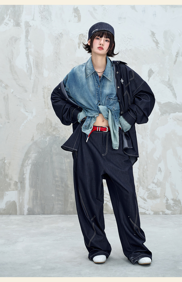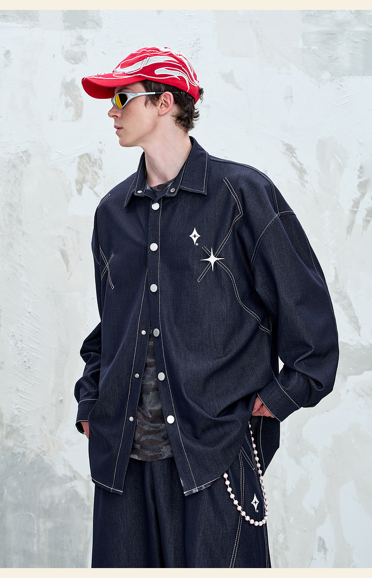 BJHG不计后果仿牛仔衬衫外套男款夏慵懒松弛感情侣套装衬衣外套女