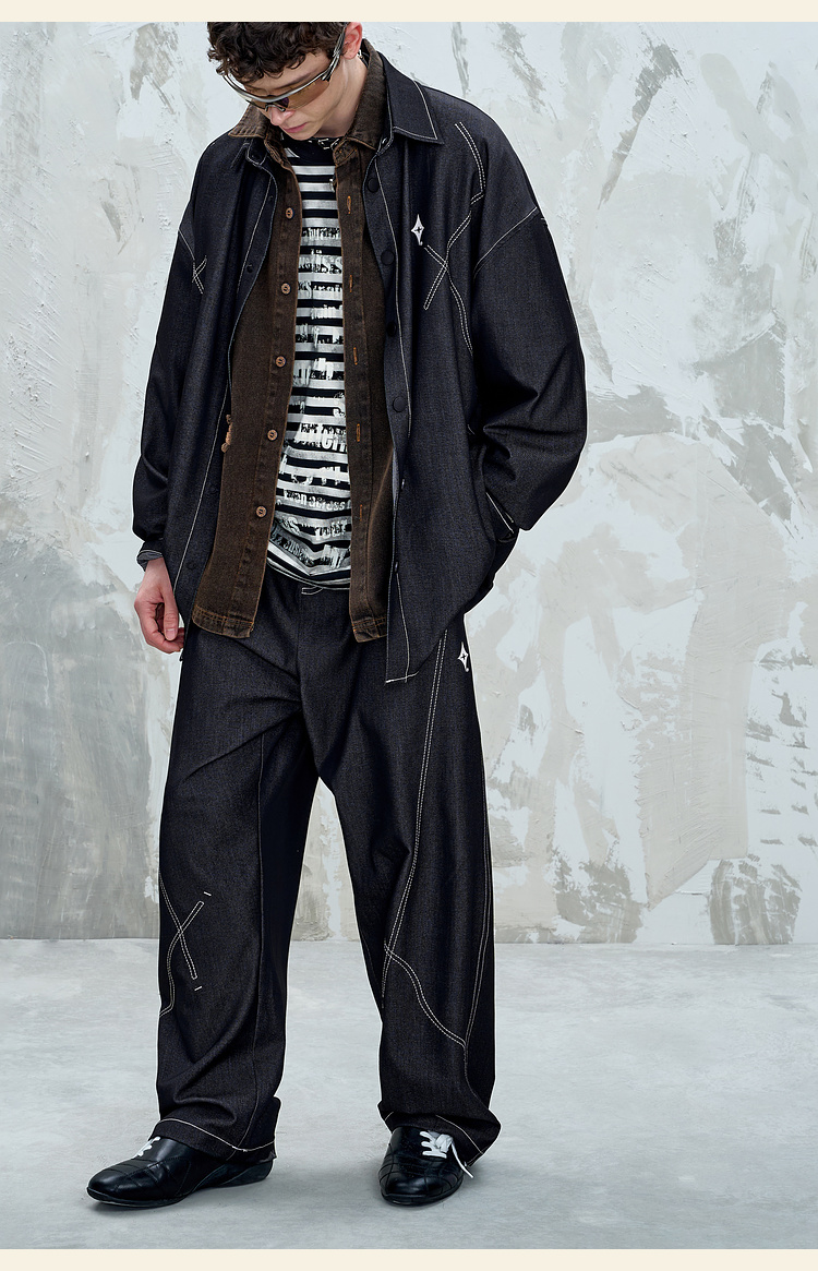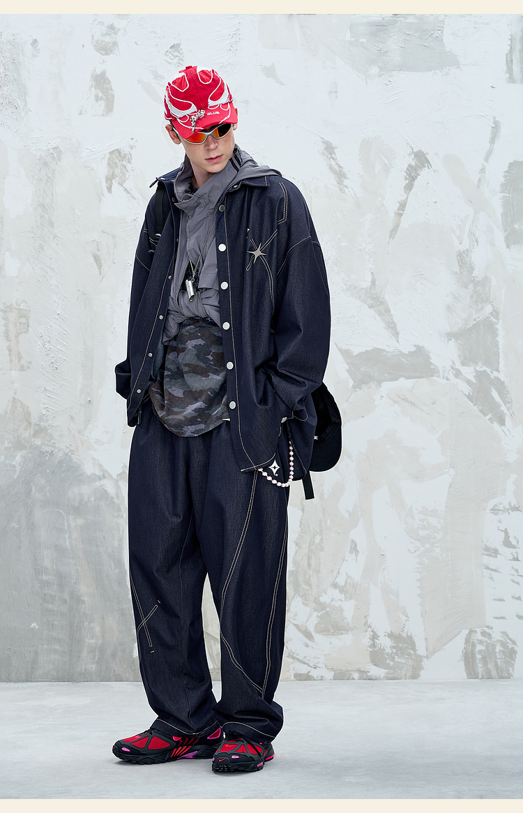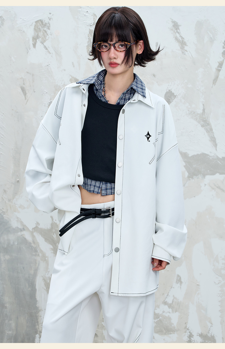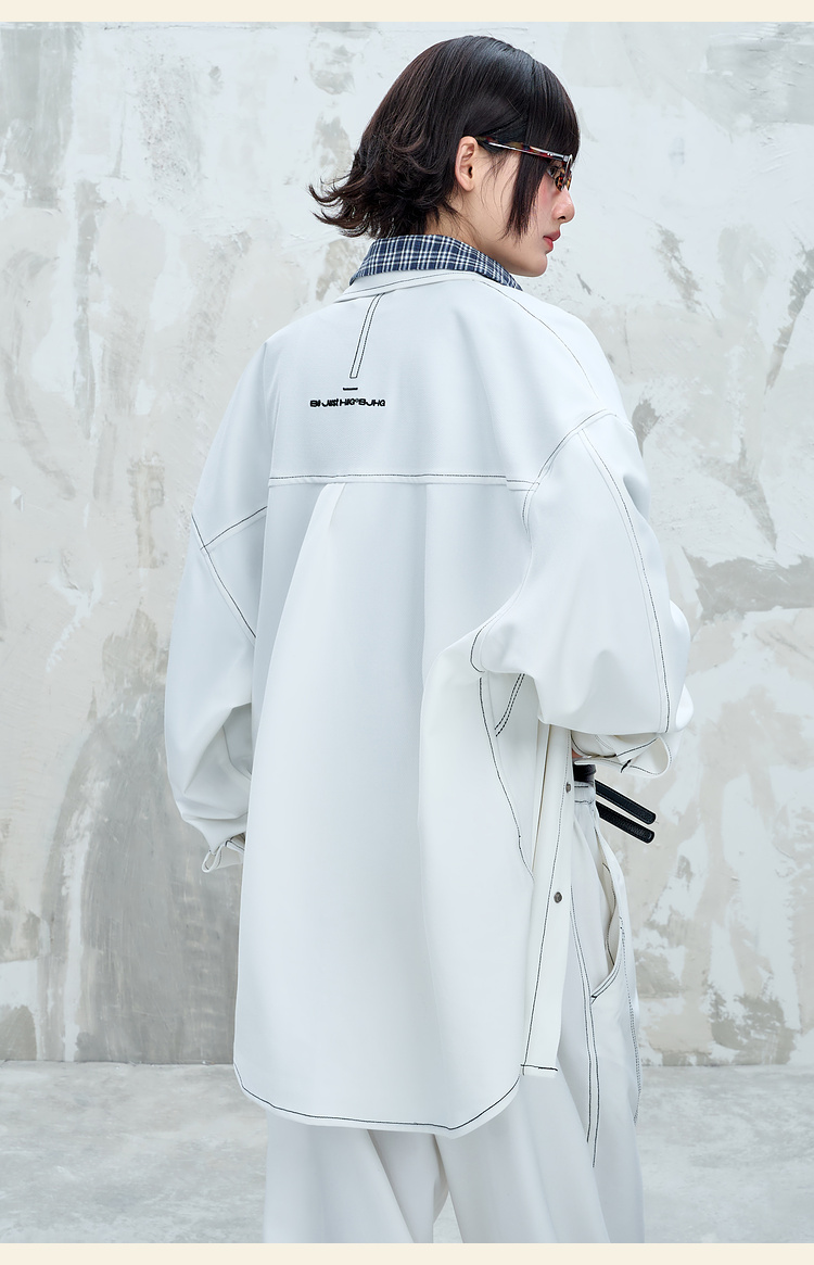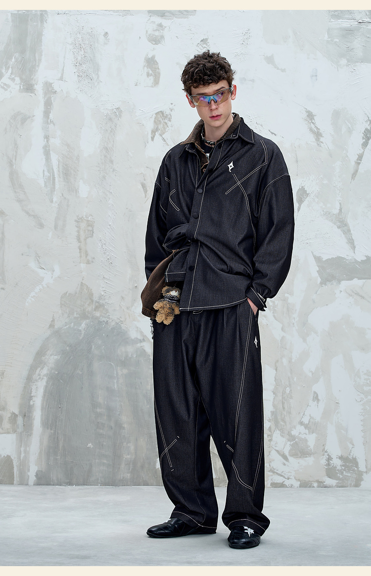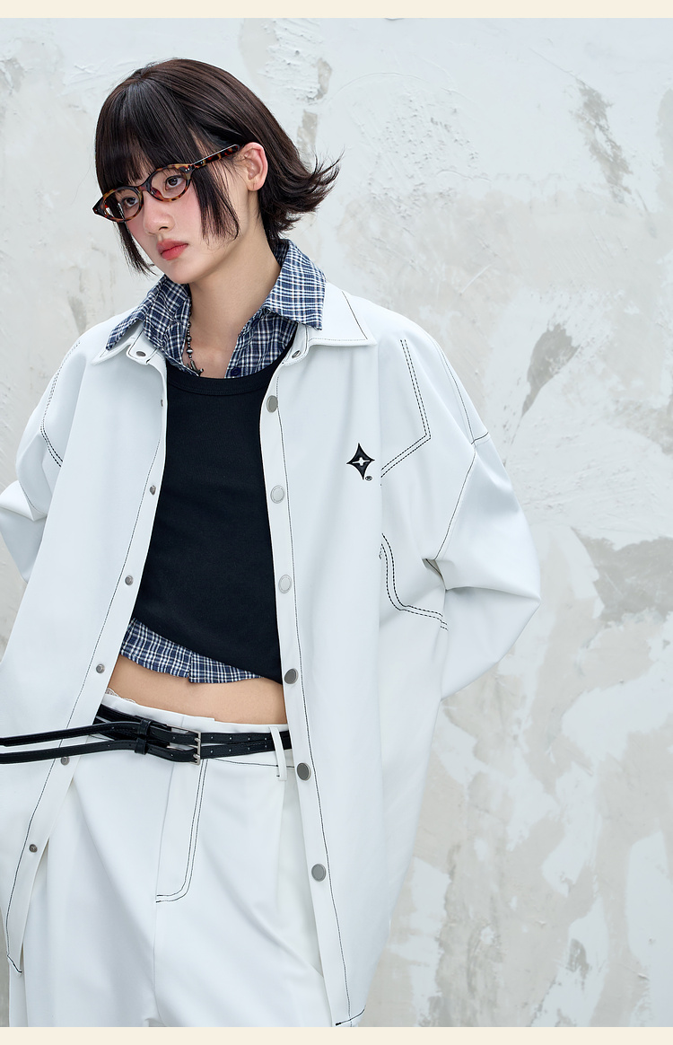 BJHG不计后果仿牛仔衬衫外套男款夏慵懒松弛感情侣套装衬衣外套女