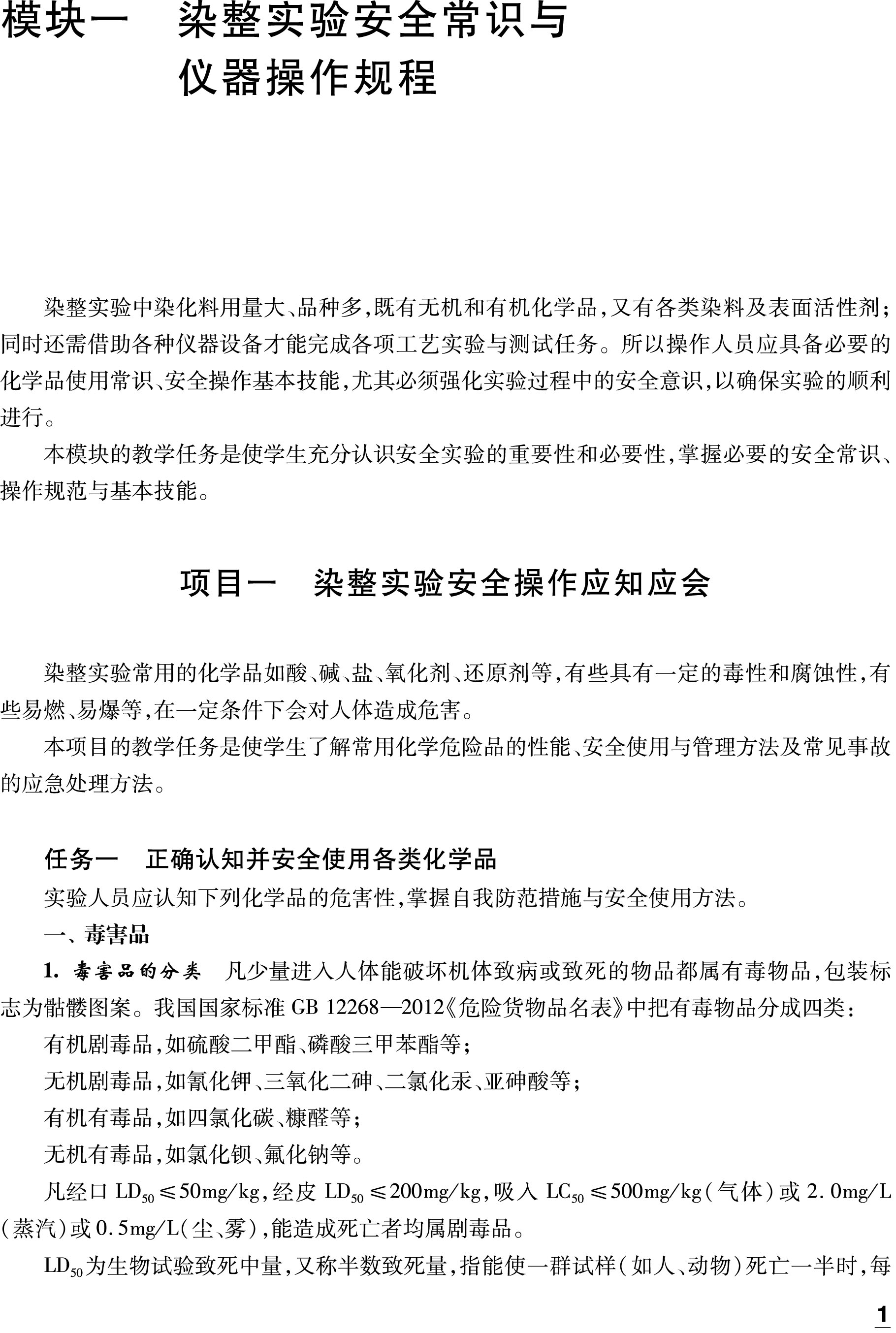 染整技术实验(版)染整试化验人员的安全常识、溶液配制、配方计算及常用试化验仪器设备的操作规程染整产品质量检测操作手册