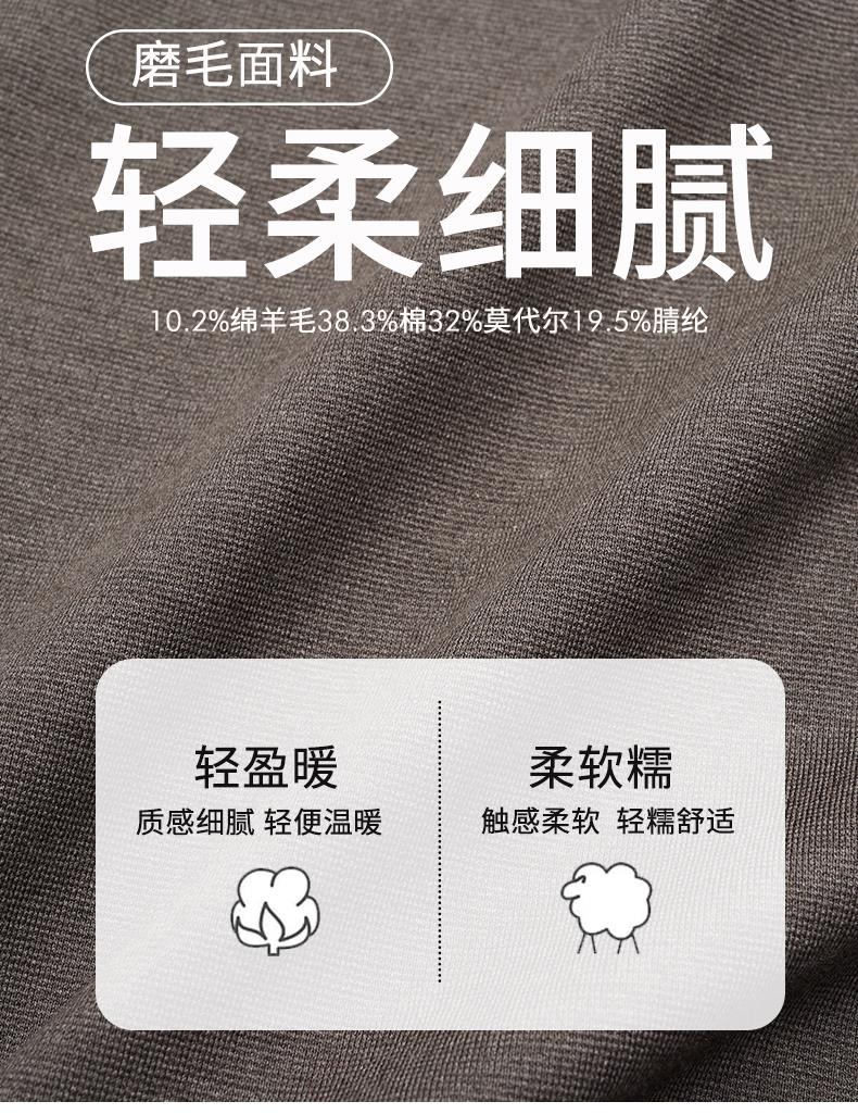 | 版型: 宽松型 | 材质成分: 棉38.3% 莫代尔纤维(莫代尔)32% 聚丙烯腈纤维(腈纶)19.5% 羊毛10.2% |