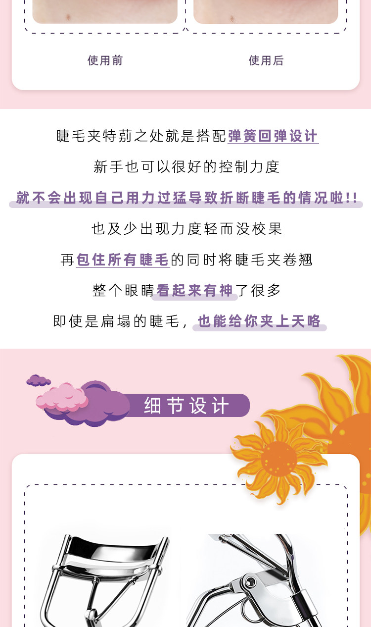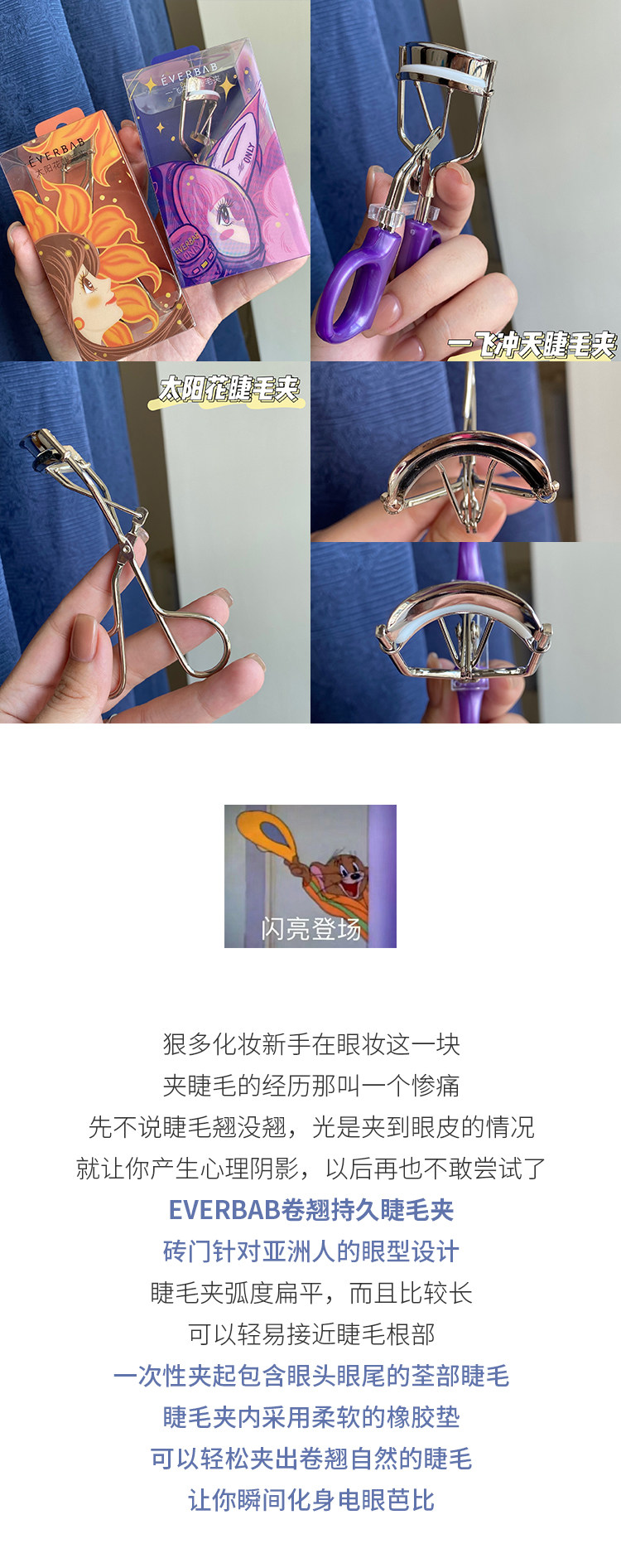 让睫毛飞起来 !everbab睫毛夹 持久卷翘便携定型广角分段式初学者太阳花