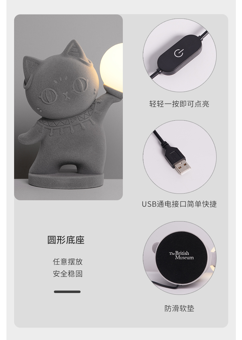 大英博物馆盖亚·安德森猫系列巴斯特植绒萌猫举明灯氛围灯礼物