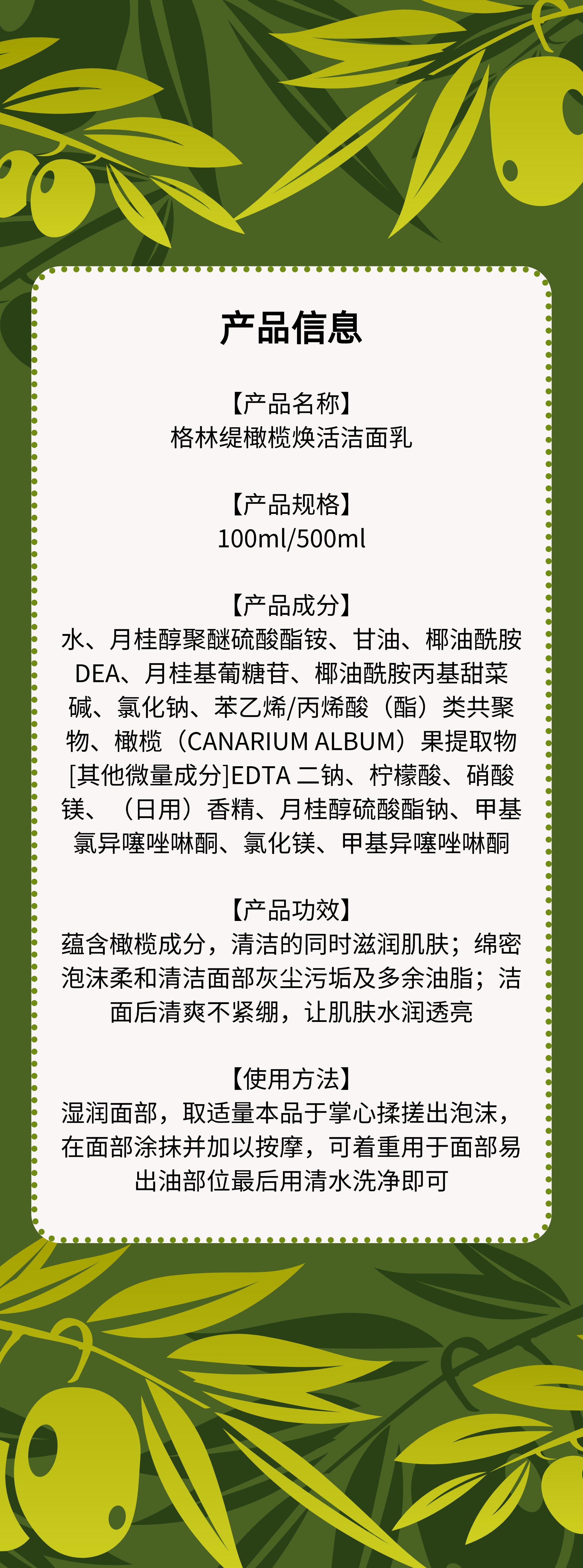 橄榄·焕活洁面乳100ml(原水润丝滑洁面乳)【格林缇】