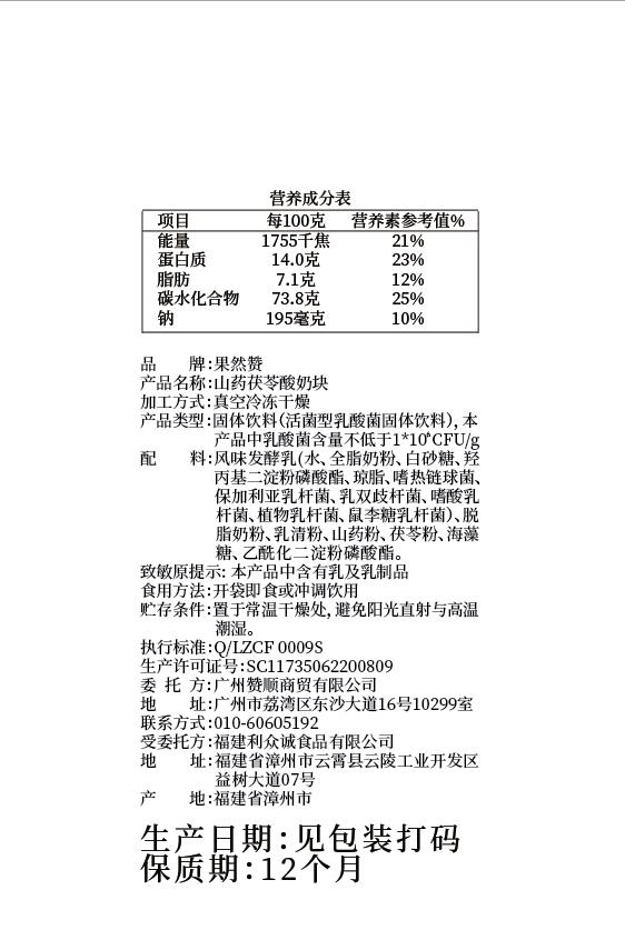 【积分兑换】正安国货铺 山药茯苓酸奶块 破壁山药茯苓粉奶香浓郁酸甜酥脆营养好吸收