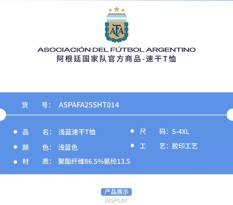 【官方正版】阿根廷国家队 | 浅蓝速干T恤夏日小清新短袖清爽简约