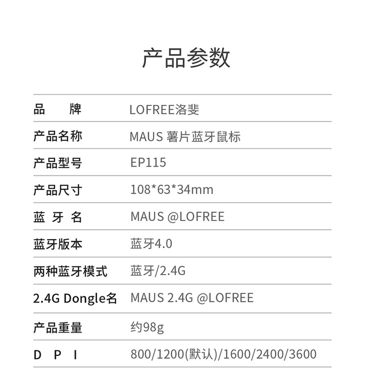 LOFREE/洛斐 MAUS 薯片蓝牙鼠标无线笔记本台式电脑家用办公鼠标