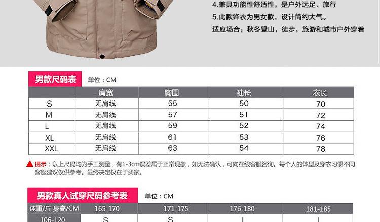 秋冬季新款户外冲锋衣男两件套三合一加厚防风防水登山滑雪服