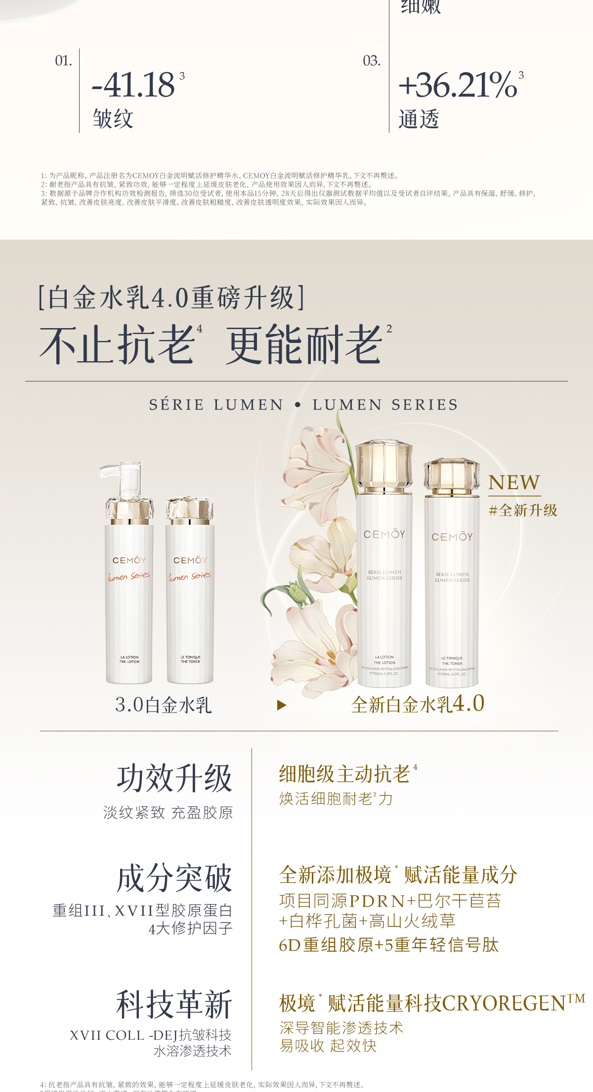 白金流明光蕴奢宠礼盒120ml+120ml+30ml+30ml送洁面乳30g*2+精华水30ml*2+精华乳30ml*2