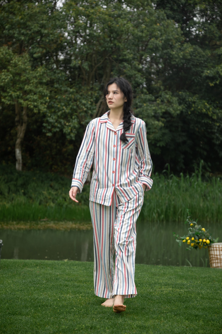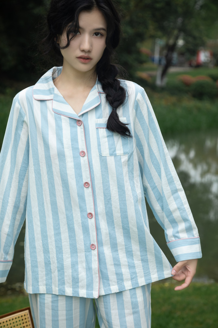 人的一生至少有1/2的时间是在家中度过 一套舒适的家居服比一个大牌包更实惠!! 不用质疑Charles Millen家居服睡衣套装的品质 绝对是天花板级别!!! 🔺ZUI顶级级的面料-100%新疆长绒棉 🔺ZUI裸睡的触感 -全棉水洗棉纱工艺 🔺ZUI戳审美的颜值- 英伦风条纹,男女都能穿