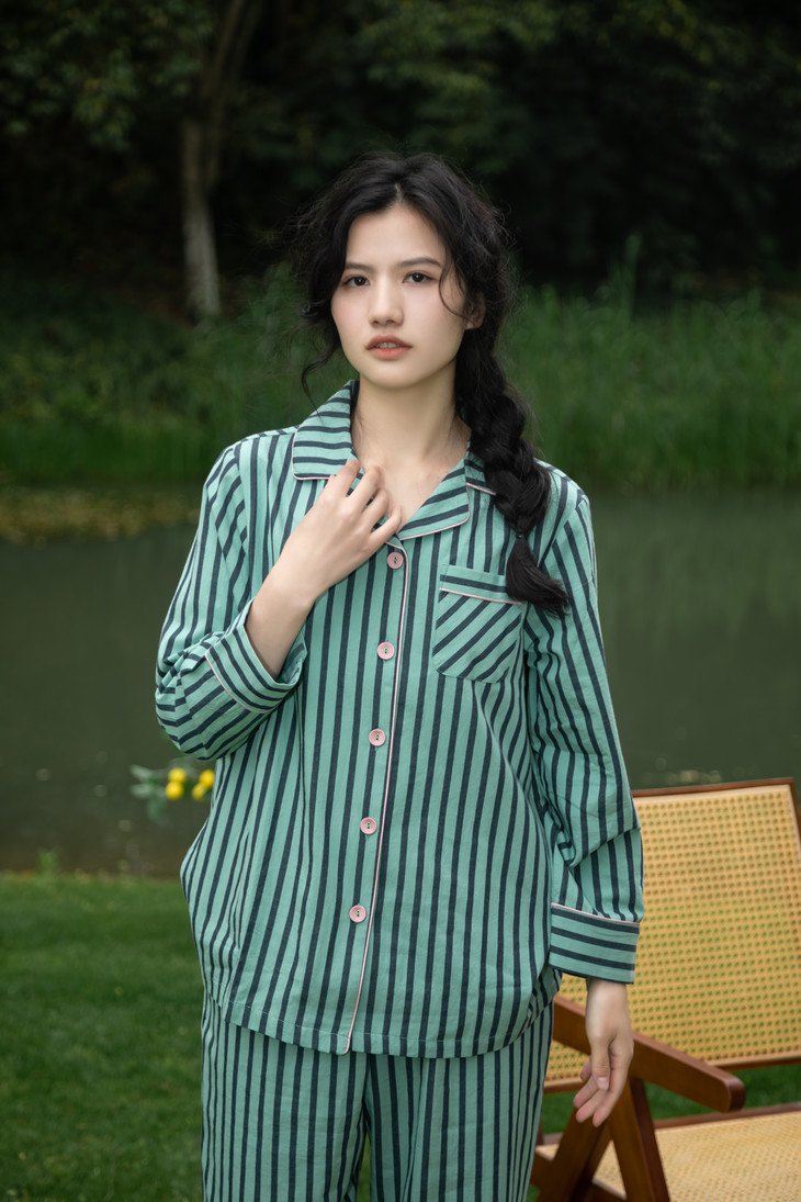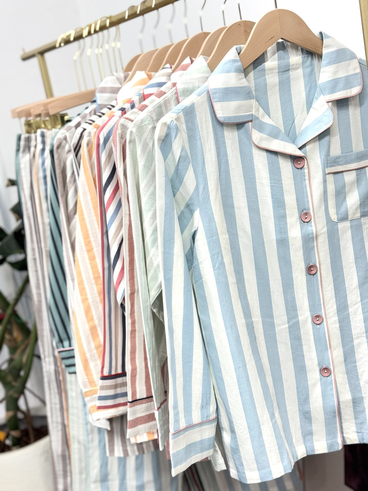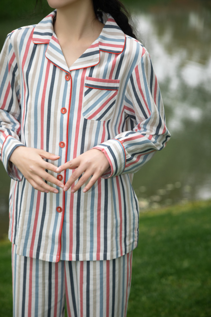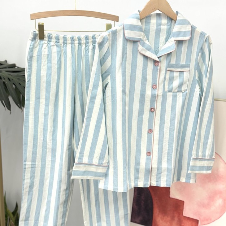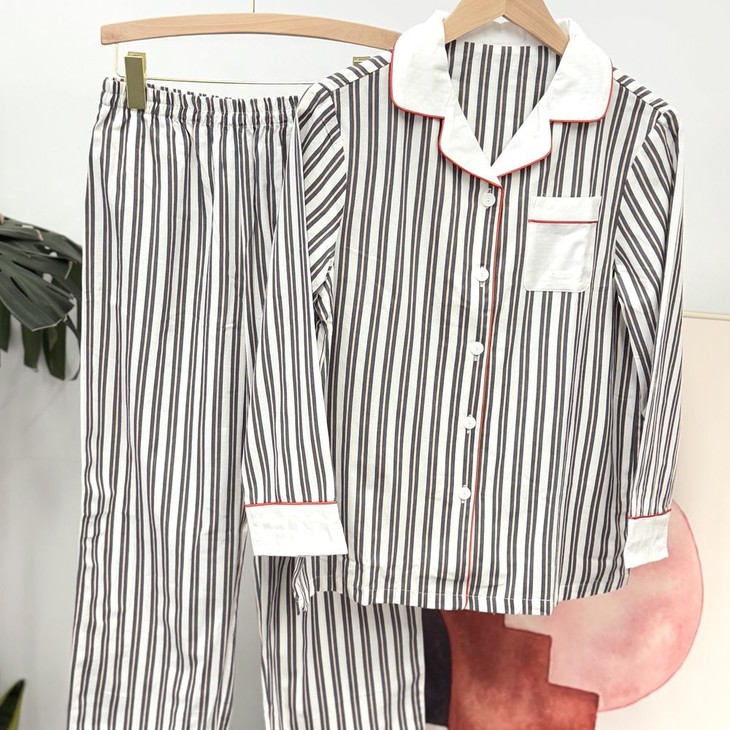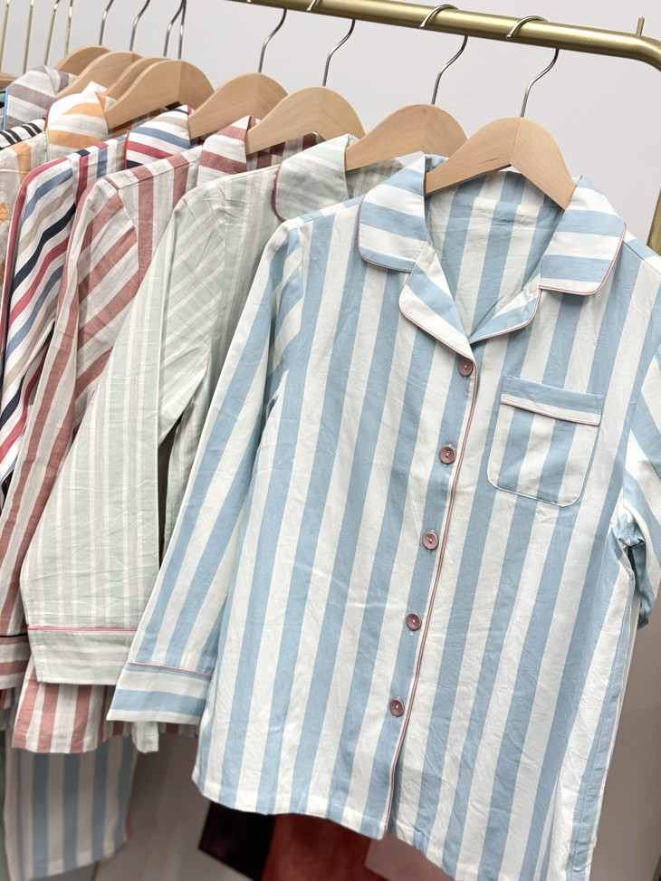 真正的品质保证! 有着大牌的血统,而且质量杠杠的👍🏻 ✅100%全棉材质,触感软糯亲肤 穿上去超级舒服,绝对是家居必备 ✅超经典英伦风条纹睡衣! 穿多久都不过时,每年都必买的款 水洗棉纱面料越洗越柔软!亲肤自然!