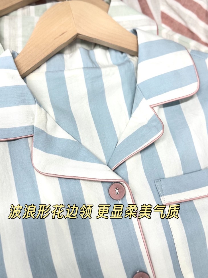 一整个亲肤软糯!面料做工都是一流的! 水洗棉纱比起普通纯棉来说, 更蓬松柔软,厚实,透气,吸汗,环保 相对而言成本也更高⚠️ 这款就比普通棉睡衣整整翻了一倍!! 线下专柜同品质同材质的一套要卖到459! 品牌直发,击破底价——99一套❗ 这价格高低入手两套起!!