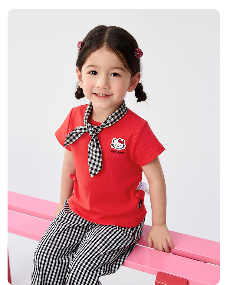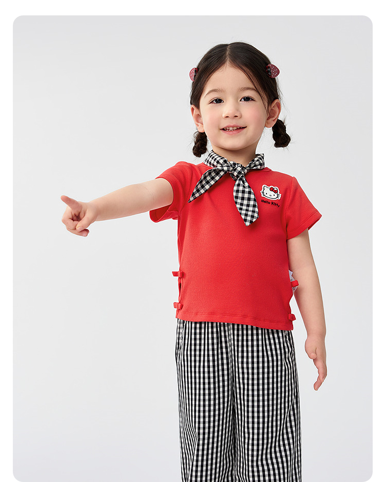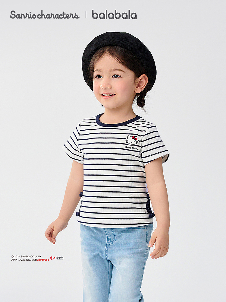 【HelloKittyIP】巴拉巴拉女童短袖T恤2025新款夏装镂空