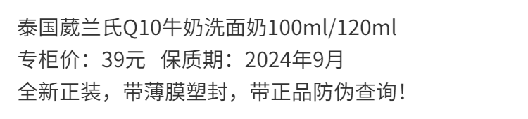 【爆款超低价预售 急单慎拍】泰国葳兰氏Q10牛奶洗面奶女氨基酸深层清洁控油保湿洁面乳去角质