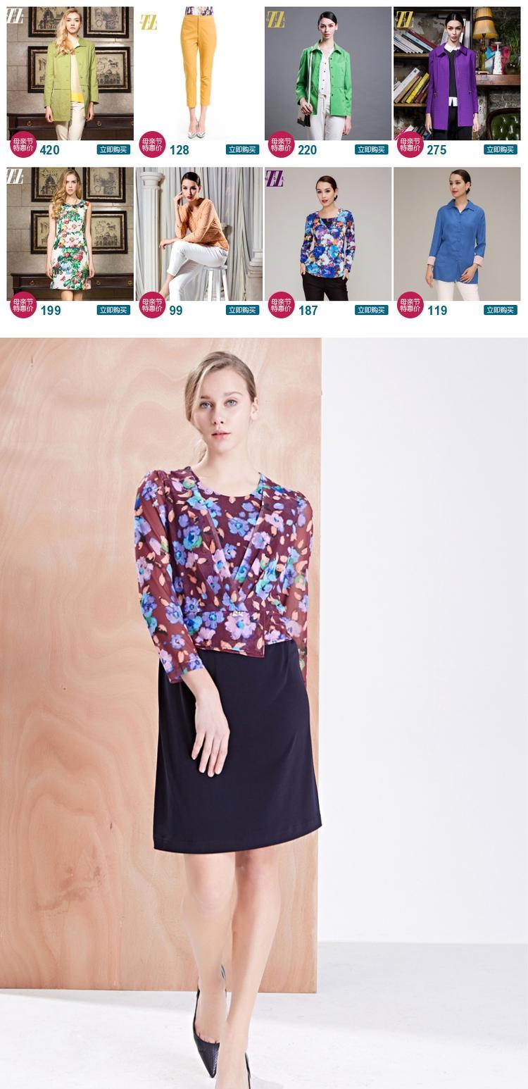 佐尔美春秋女装印花绣花修身显瘦度假风九分袖连衣裙E71LL11