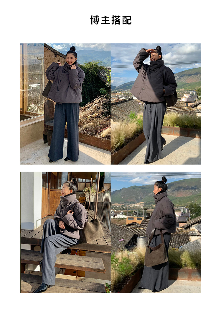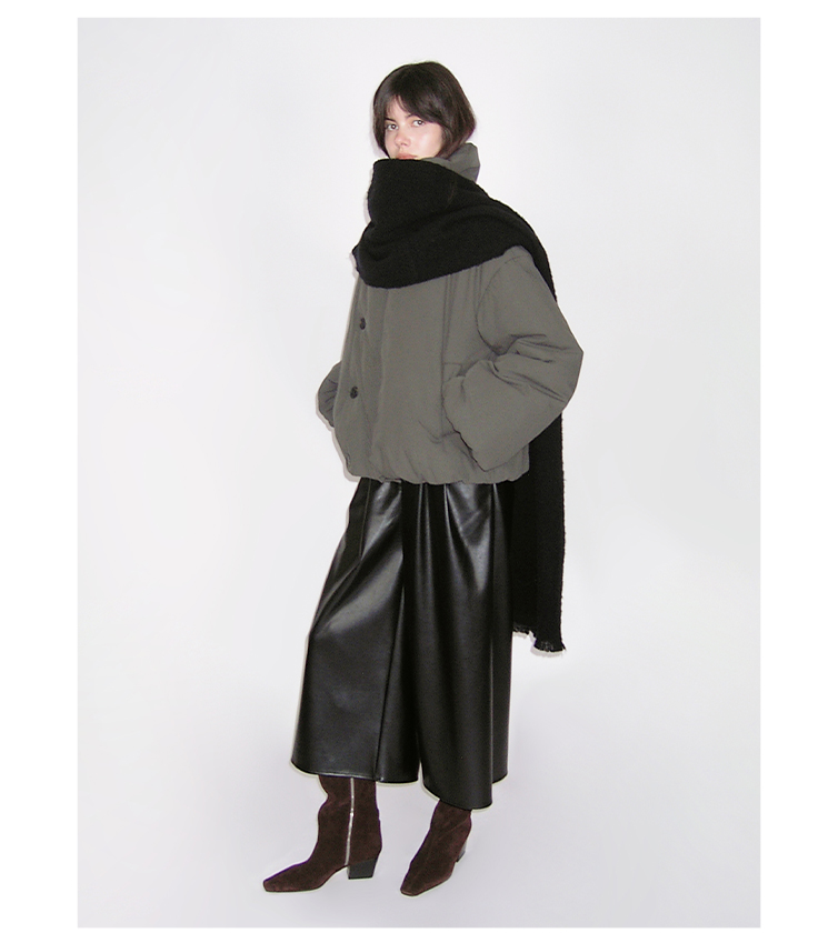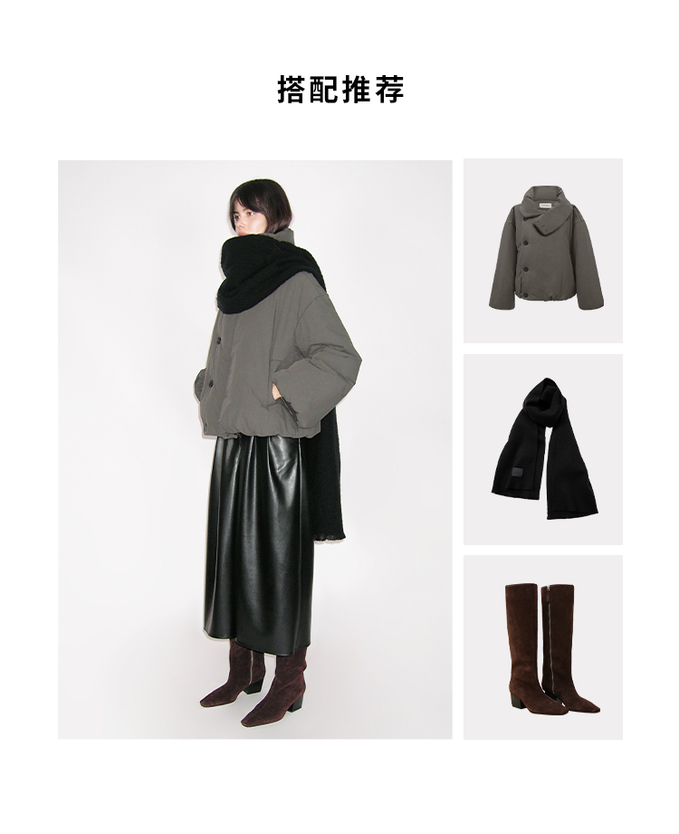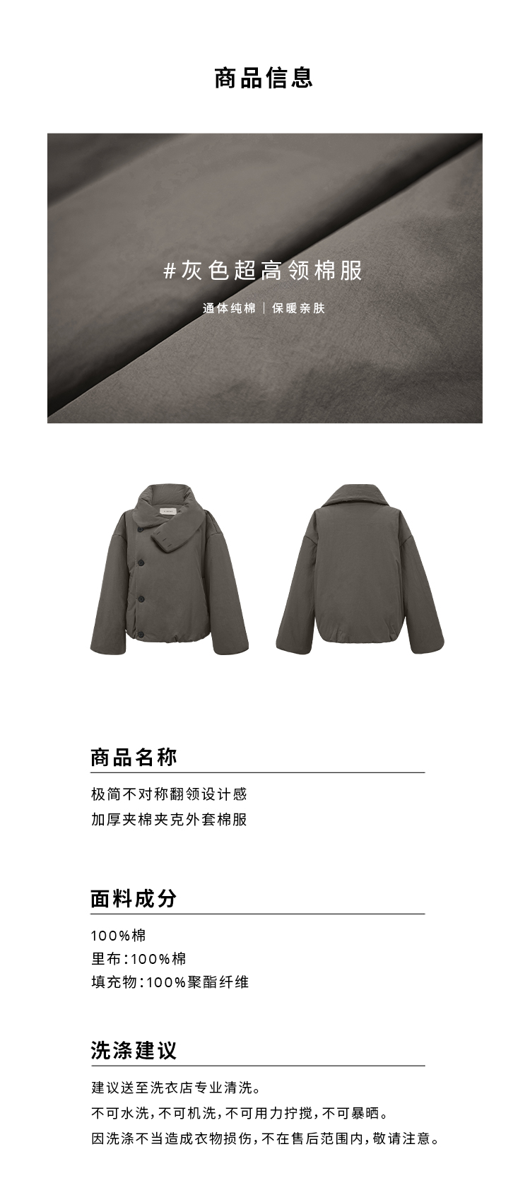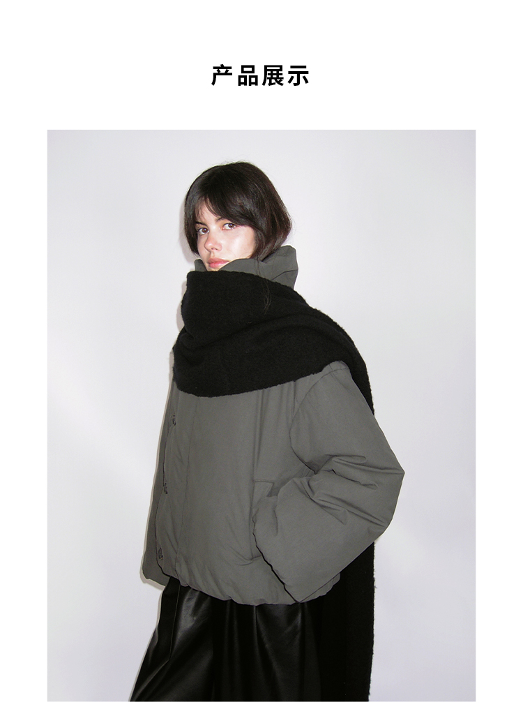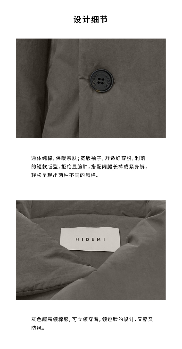 HIDEMI 极简不对称翻领设计感加厚夹棉夹克外套棉服大衣
