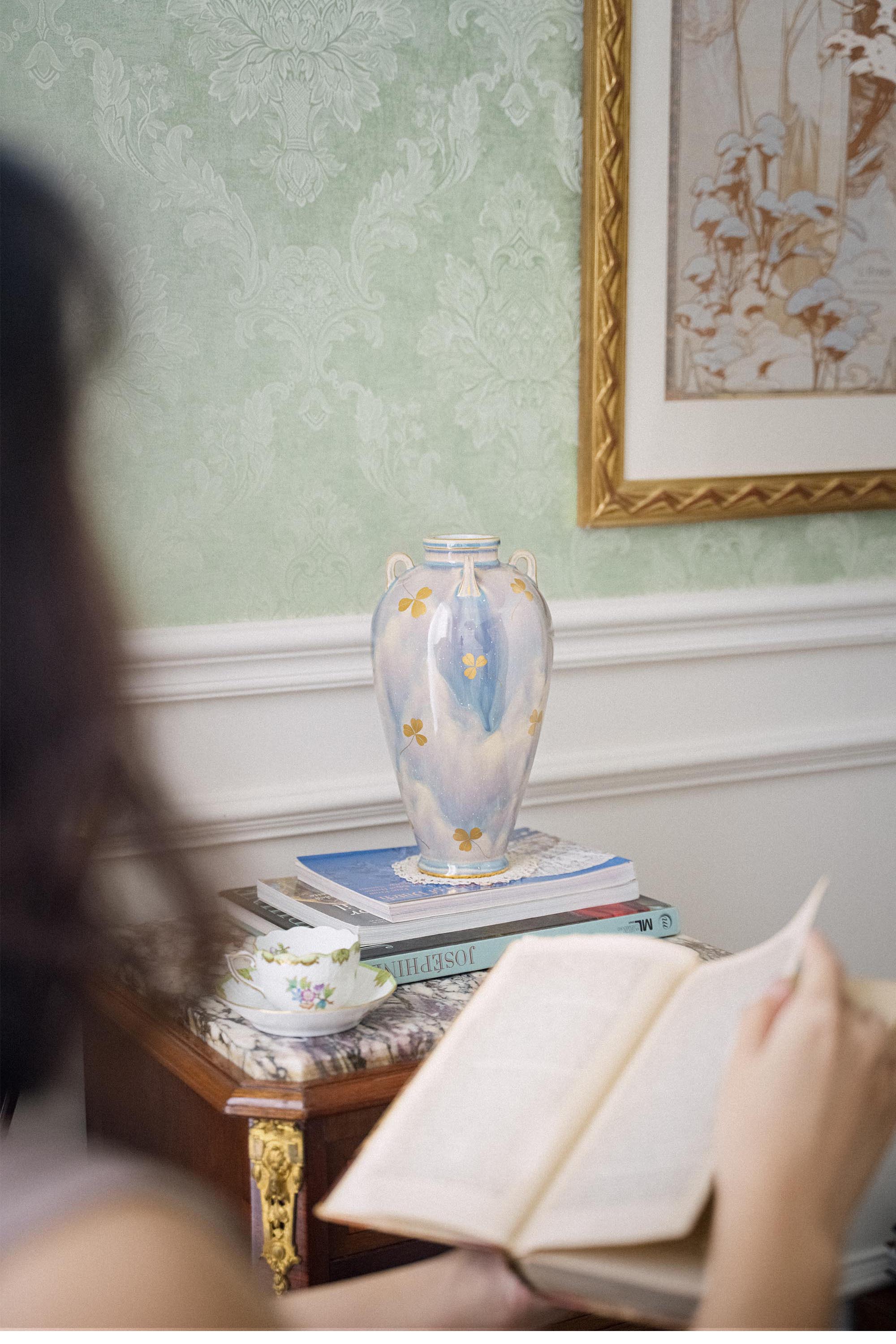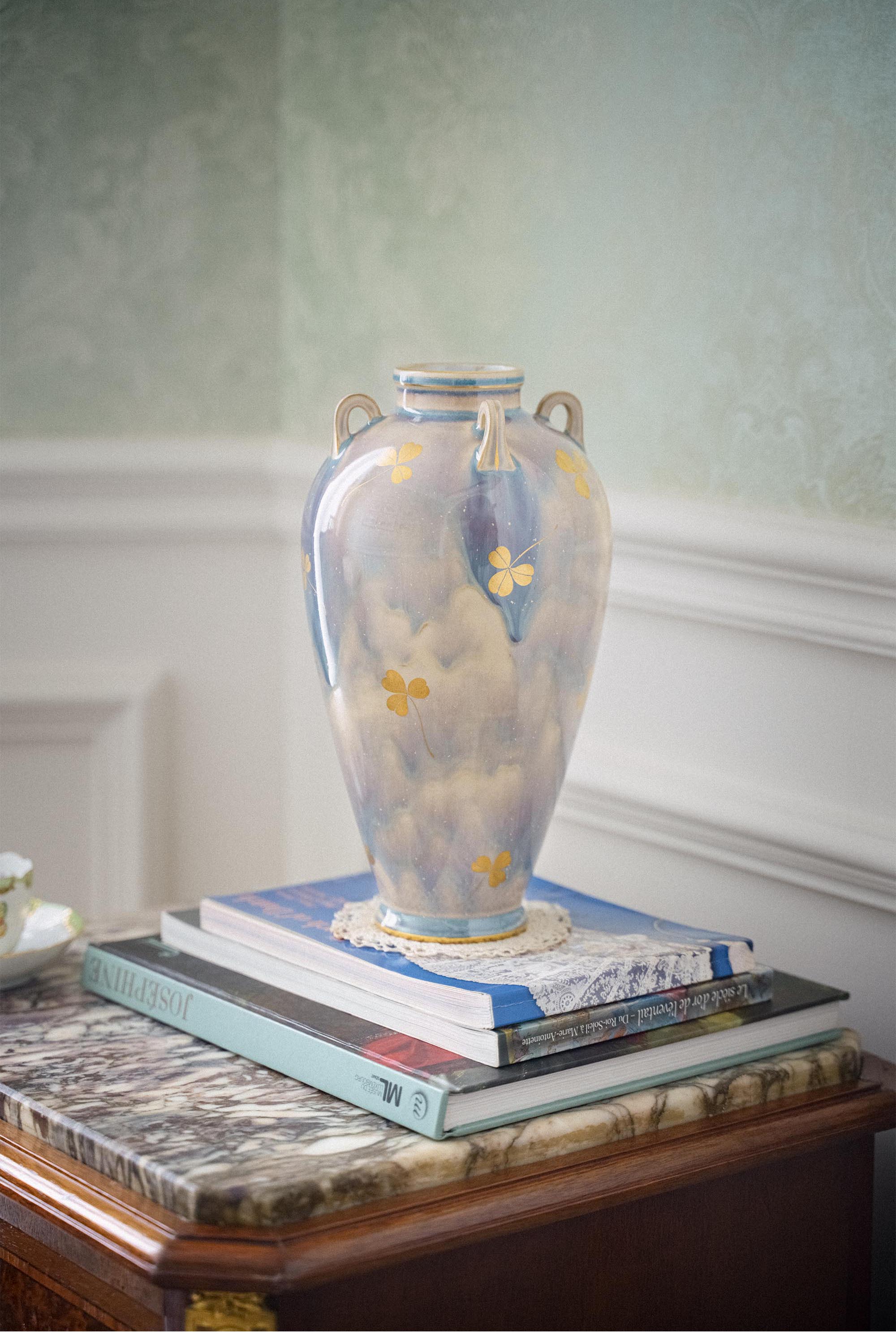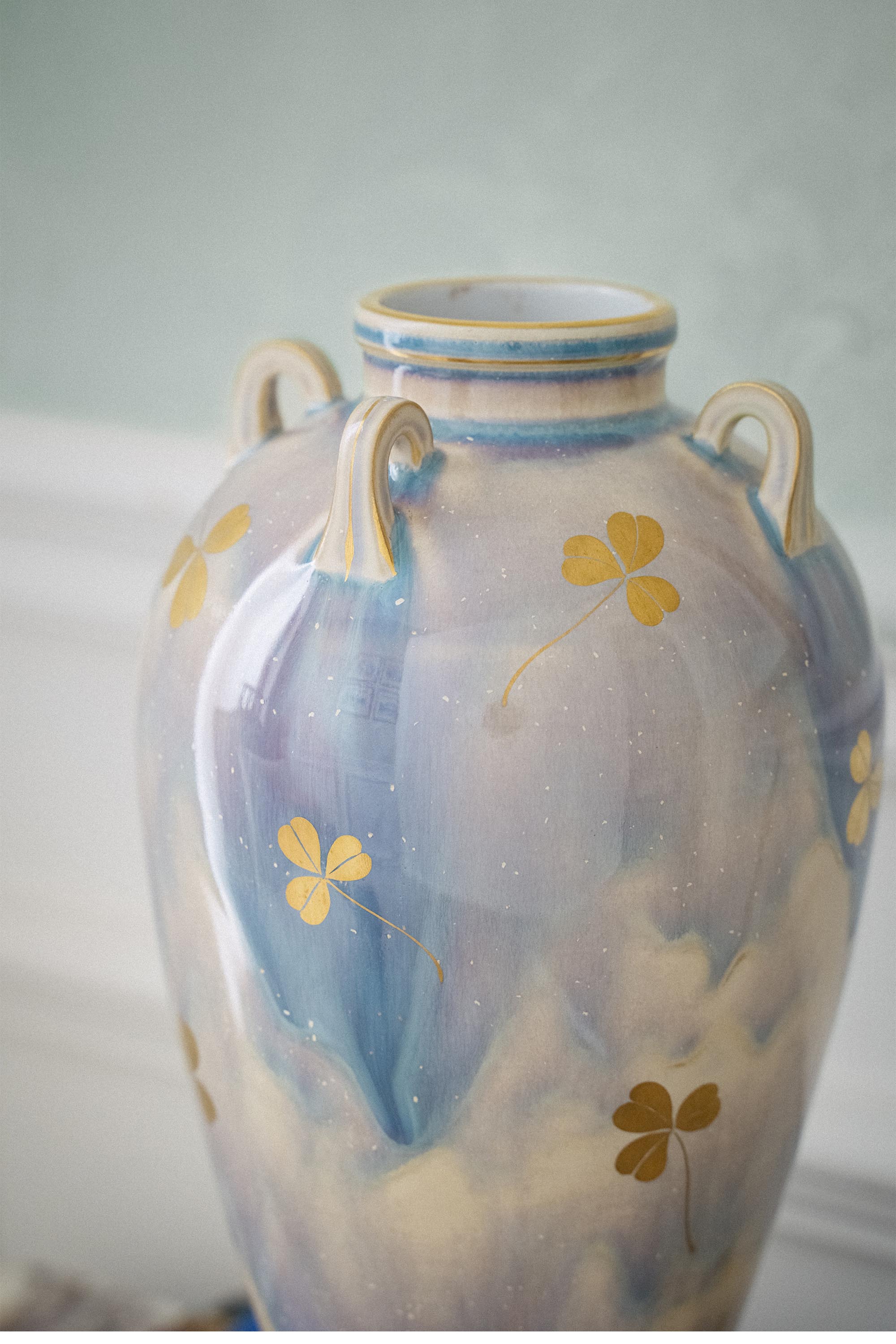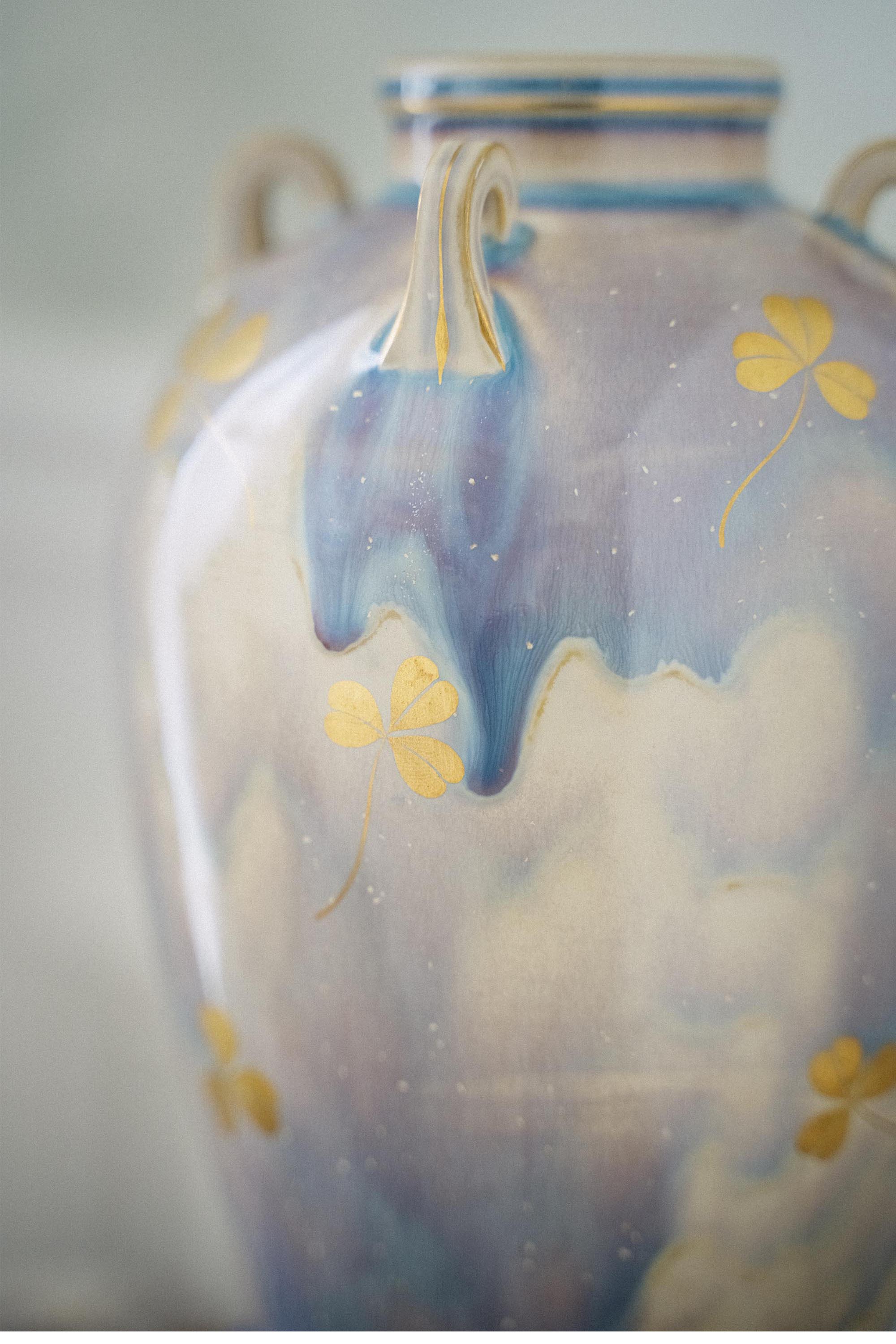 1901年代法国出品古希腊风格窑变釉三叶草描金修饰瓷瓶