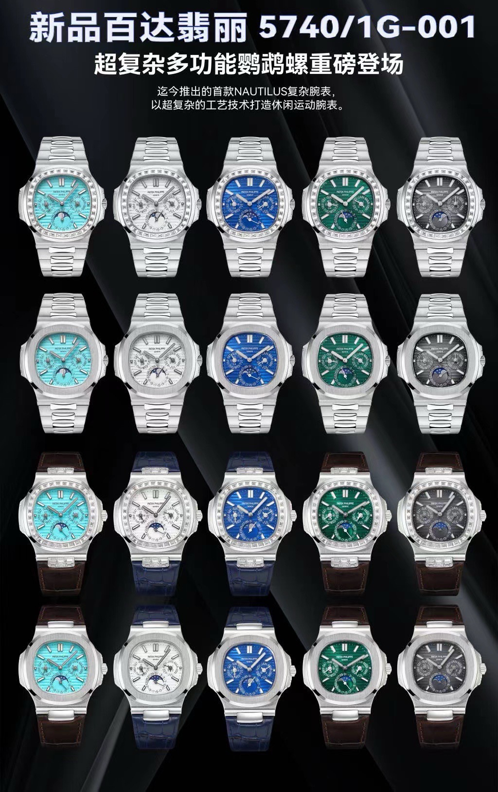 NOOB新品百达翡丽5740/1G-001--超复杂多功能鹦鹉螺重磅登场,迄今推出的首款Nautilus复杂腕表,以复杂的工艺技术打造休闲运动腕表。