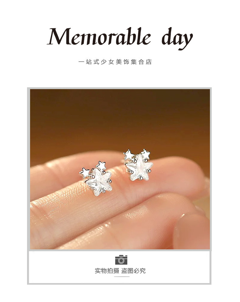 星星点缀锆石设计感银针耳环-160245648