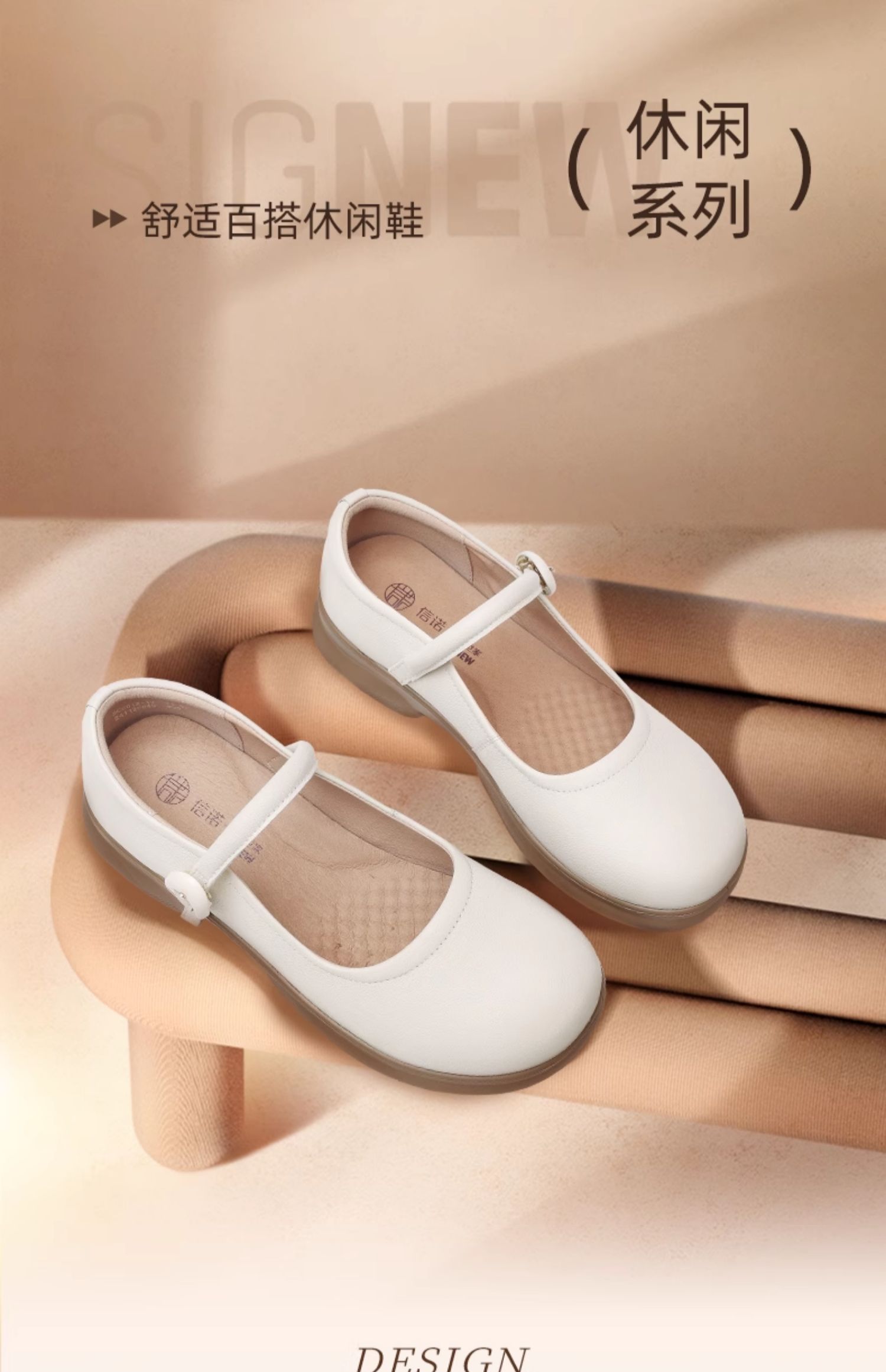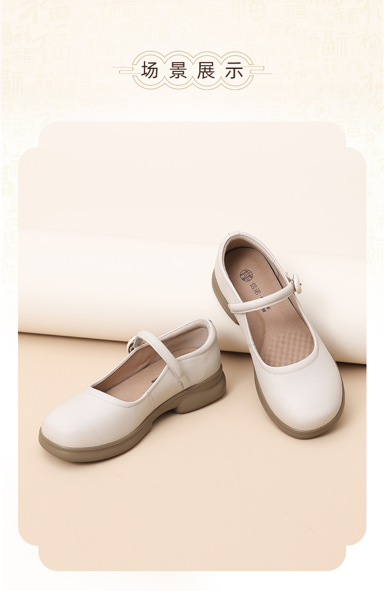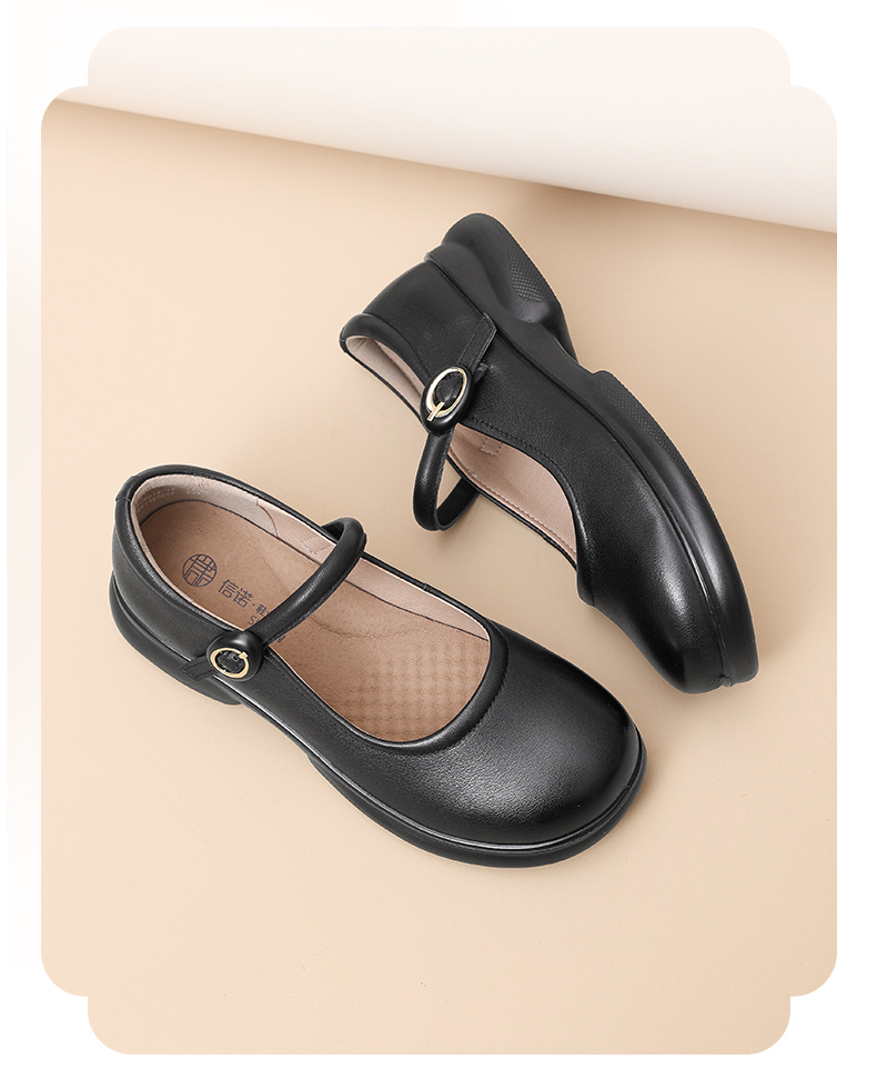 信诺真皮一字带女鞋中老年妈妈鞋2025春秋新款舒适不累脚法式单鞋5C6012-17
