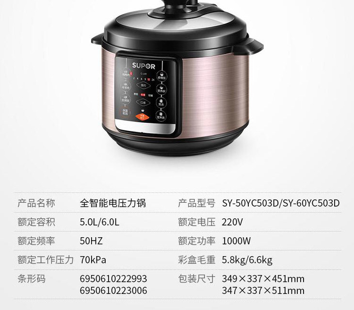 苏泊尔(509242)SY-60YC503D电压力锅双胆6L家用饭煲智能预约高压锅6升