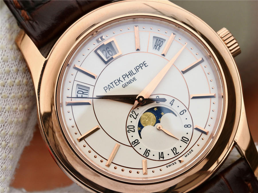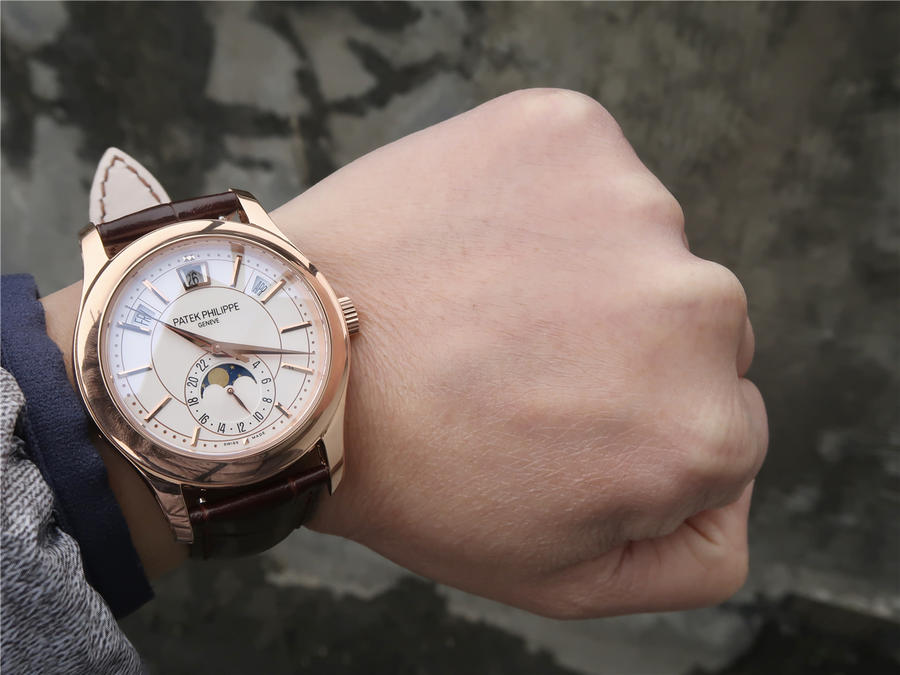 KM百达翡丽复杂功能计时5205G面世,历经两年不断对机芯进行改造与调试 一贯追求以原装工艺为目标,尺寸40cm 同原装一致拥有 月相 星期 月份 日历!
