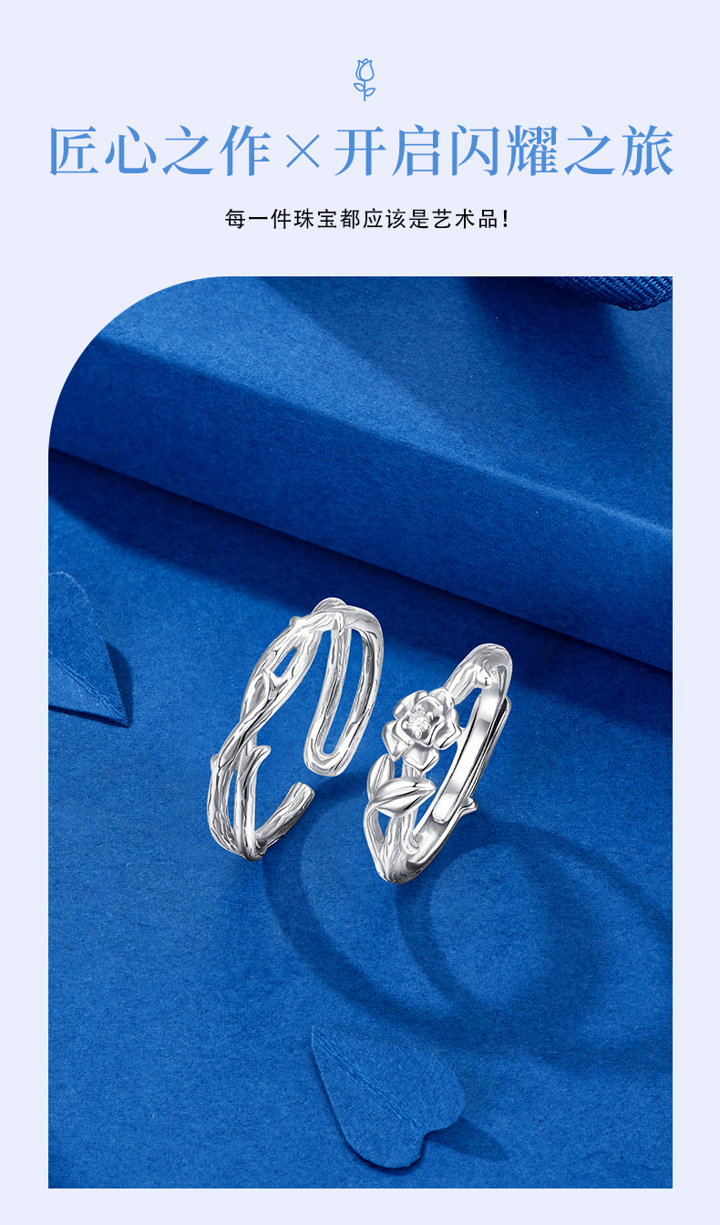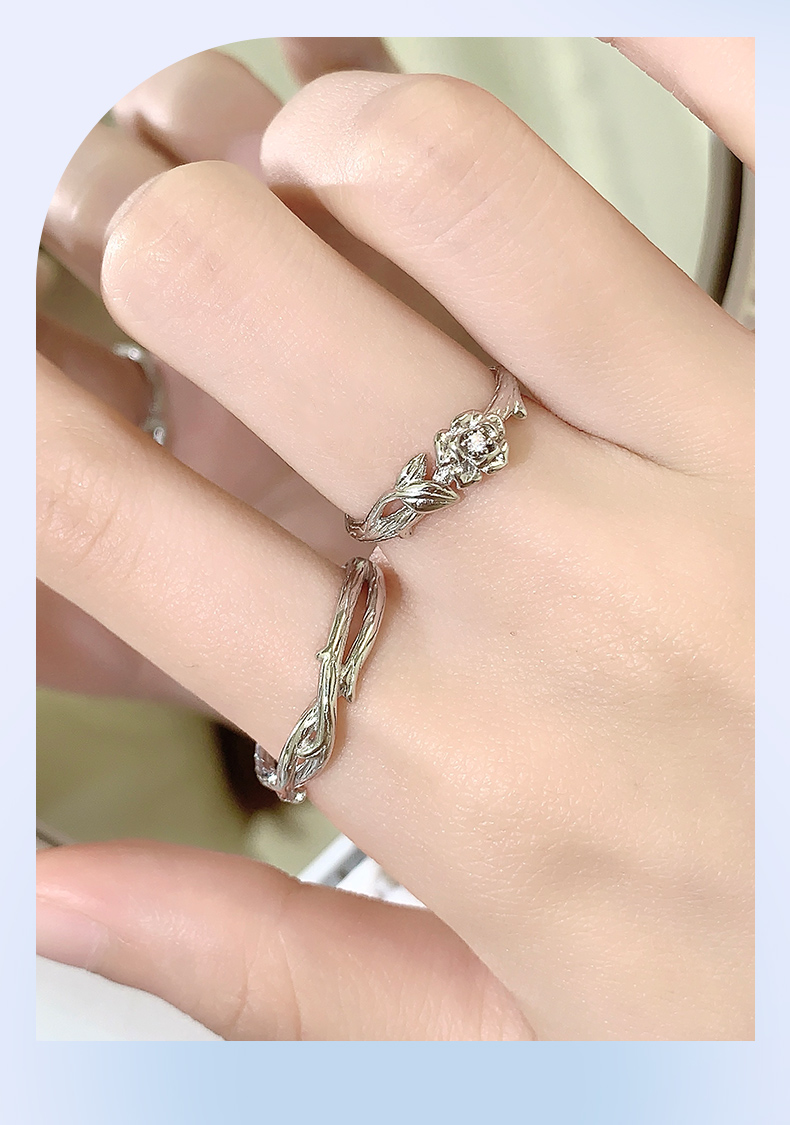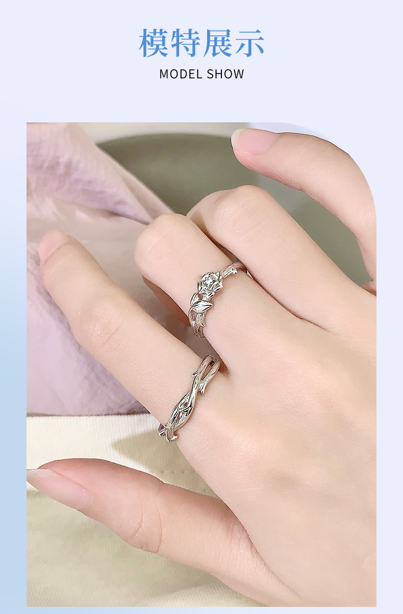 卡蒂罗/KADER 足银999 玫瑰密语情侣对戒 荆棘玫瑰简约复古开口可调节纯银素圈一对 浪漫精致恋爱告白钟爱久久