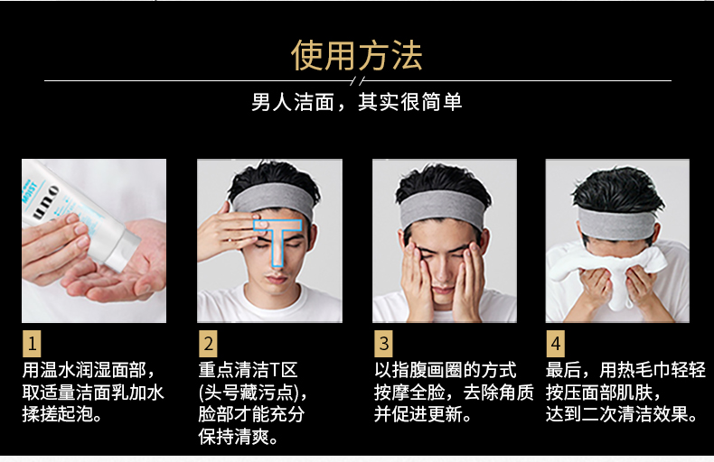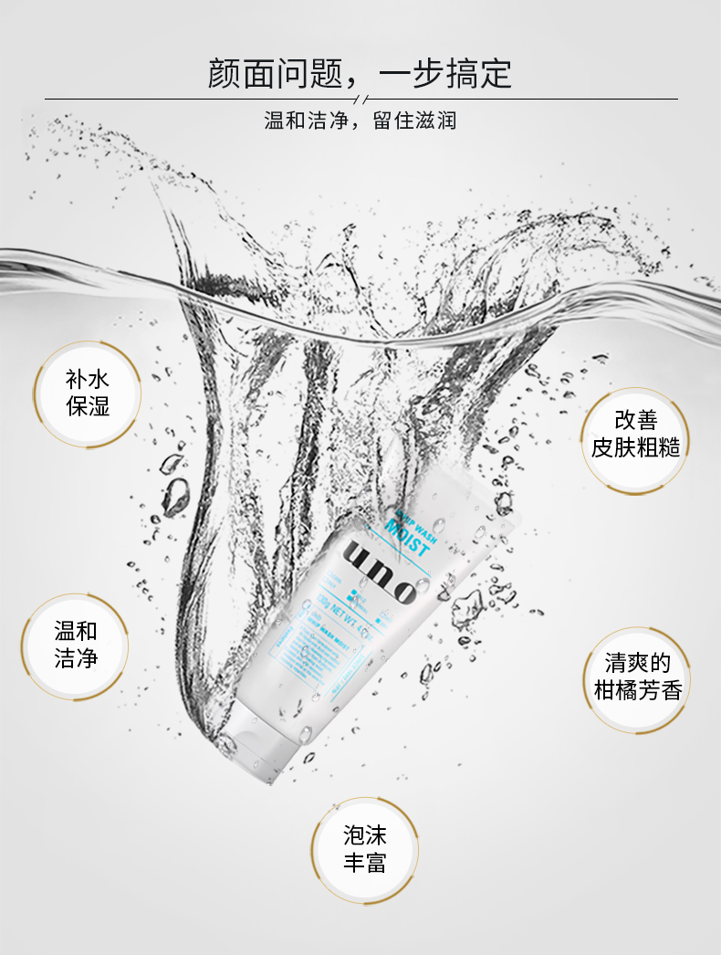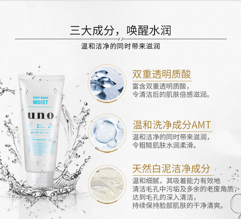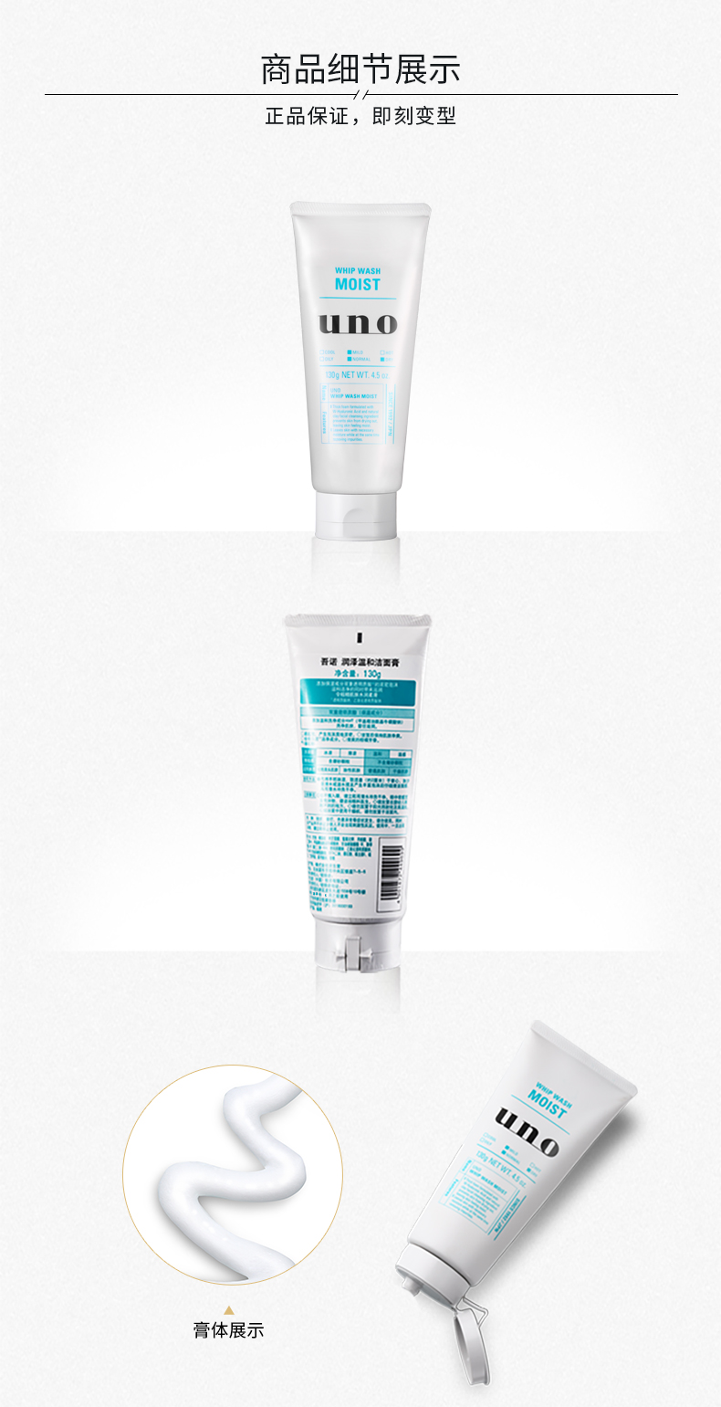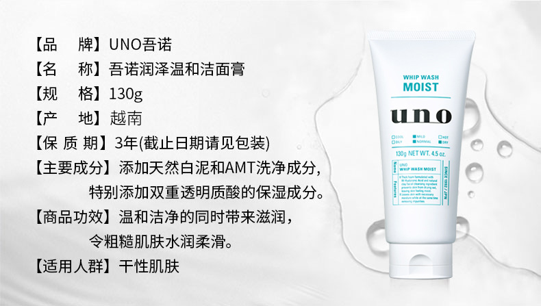 吾诺(UNO)男士润泽温和洁面乳130g (男士洗面奶深层清洁补水保湿进口)