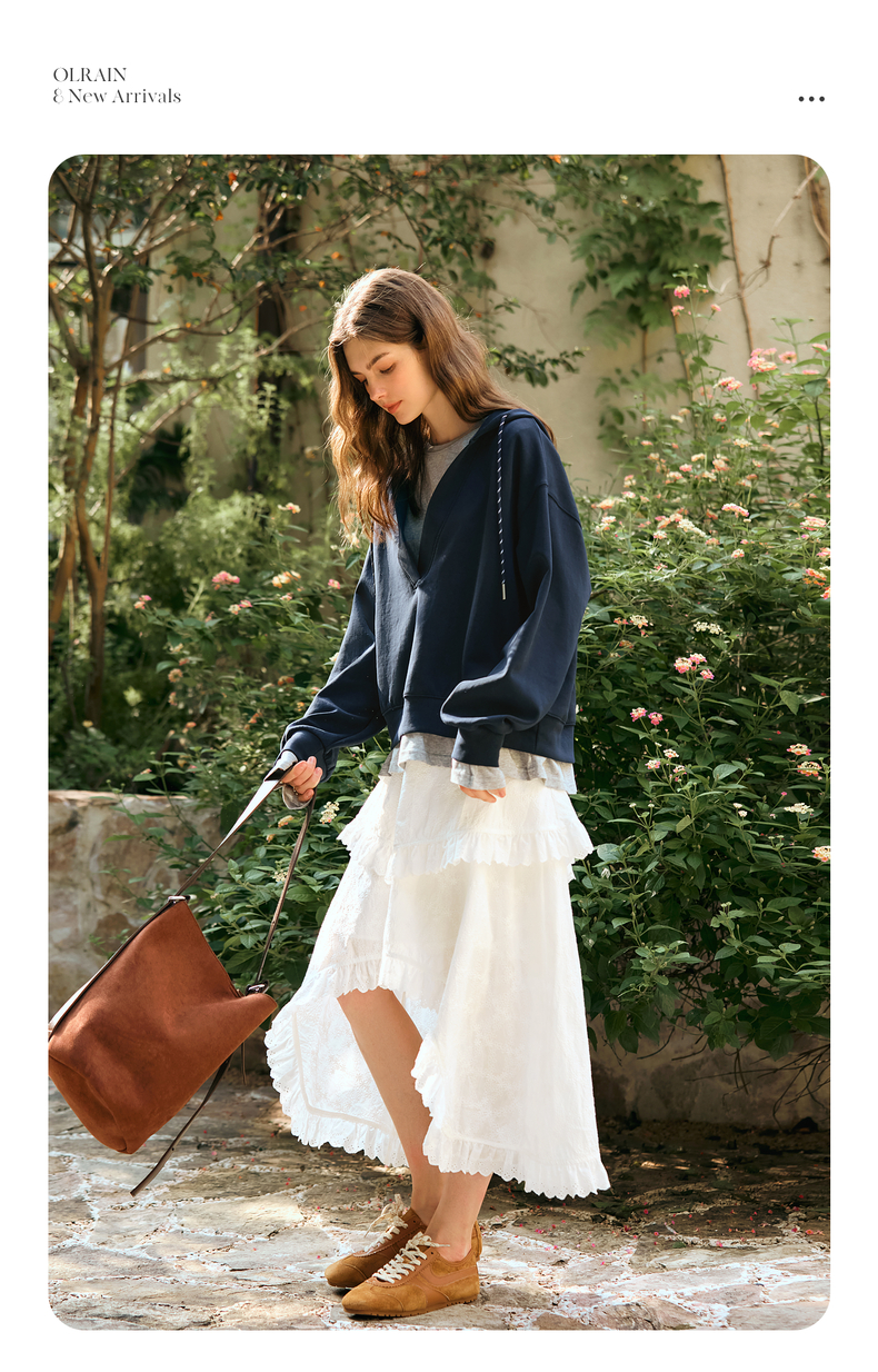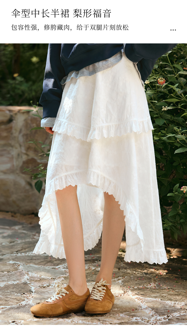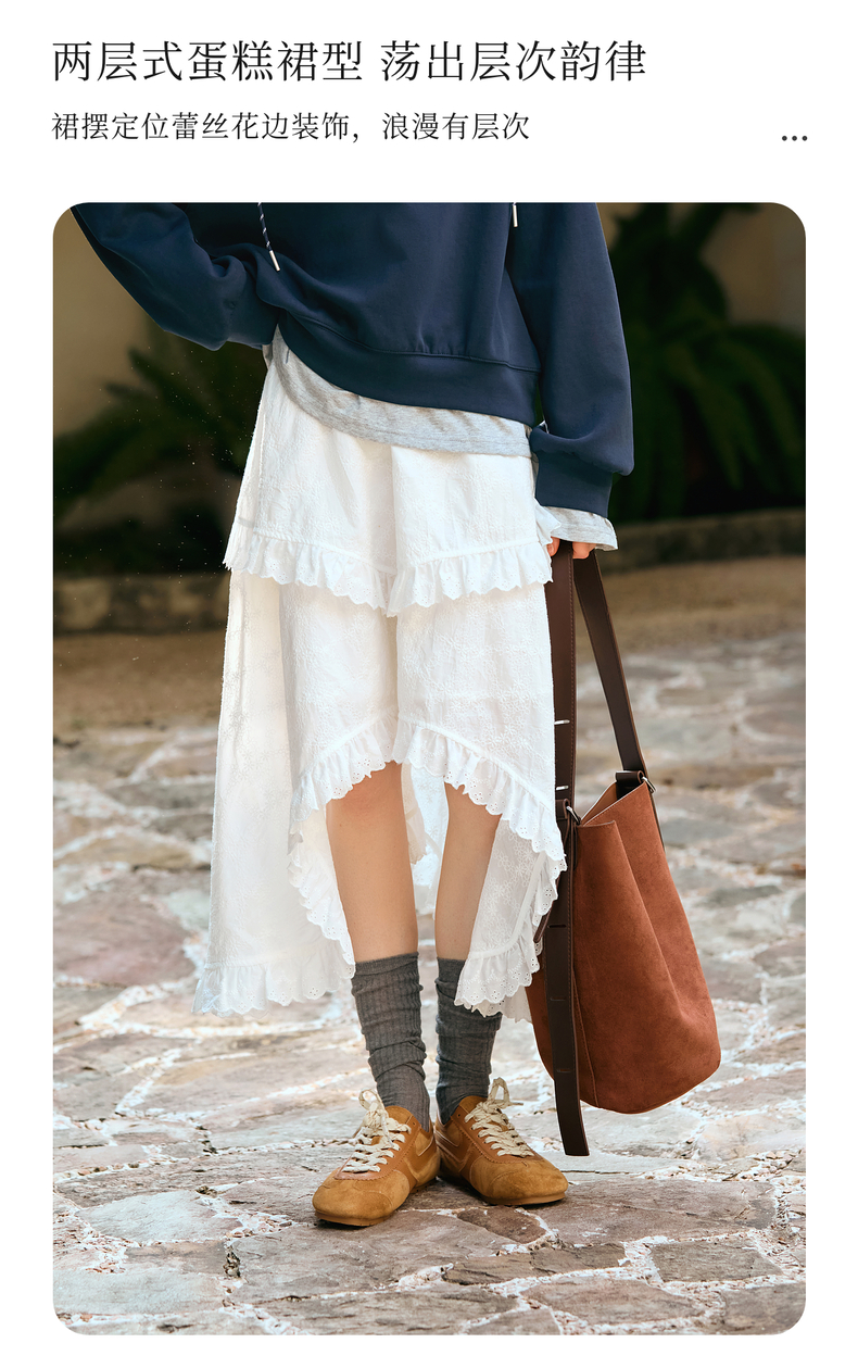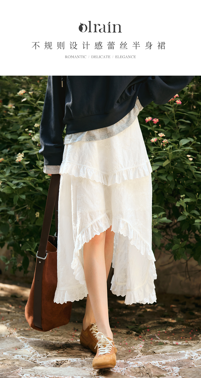 OLrain欧芮儿奶白色半身裙女冬季2024年新款设计感不规则蕾丝半裙