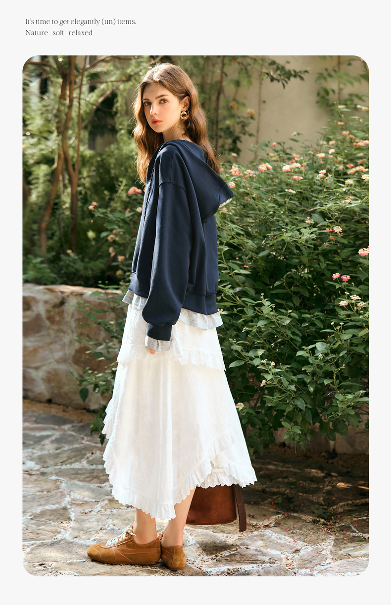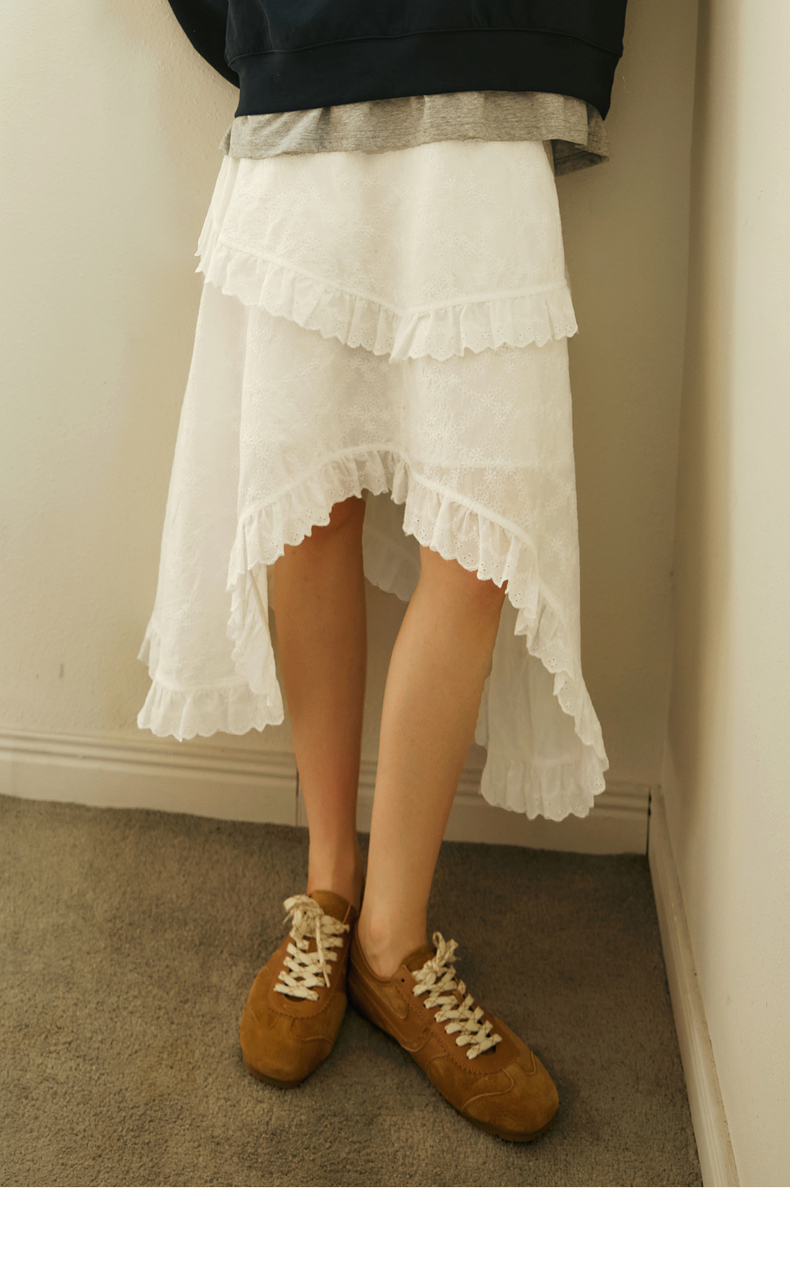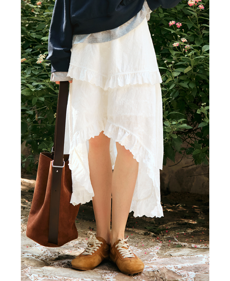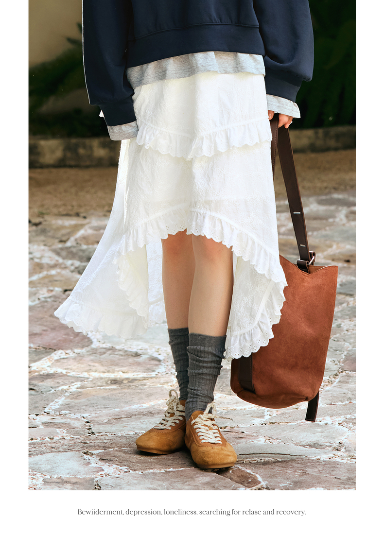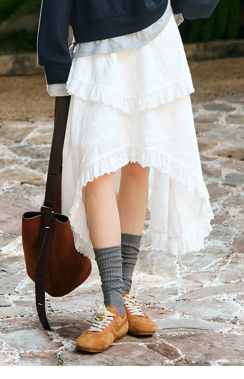 OLrain欧芮儿奶白色半身裙女冬季2024年新款设计感不规则蕾丝半裙