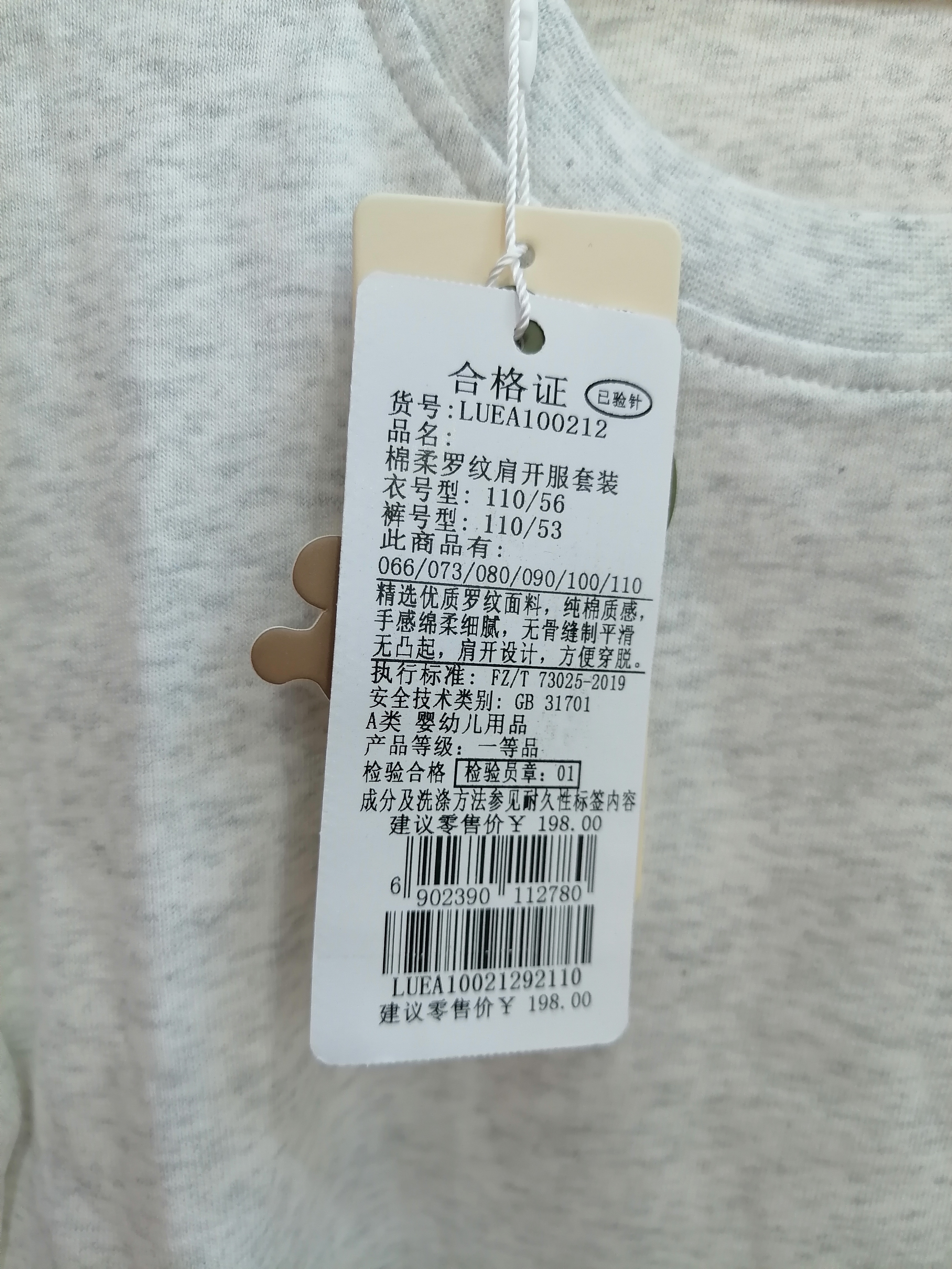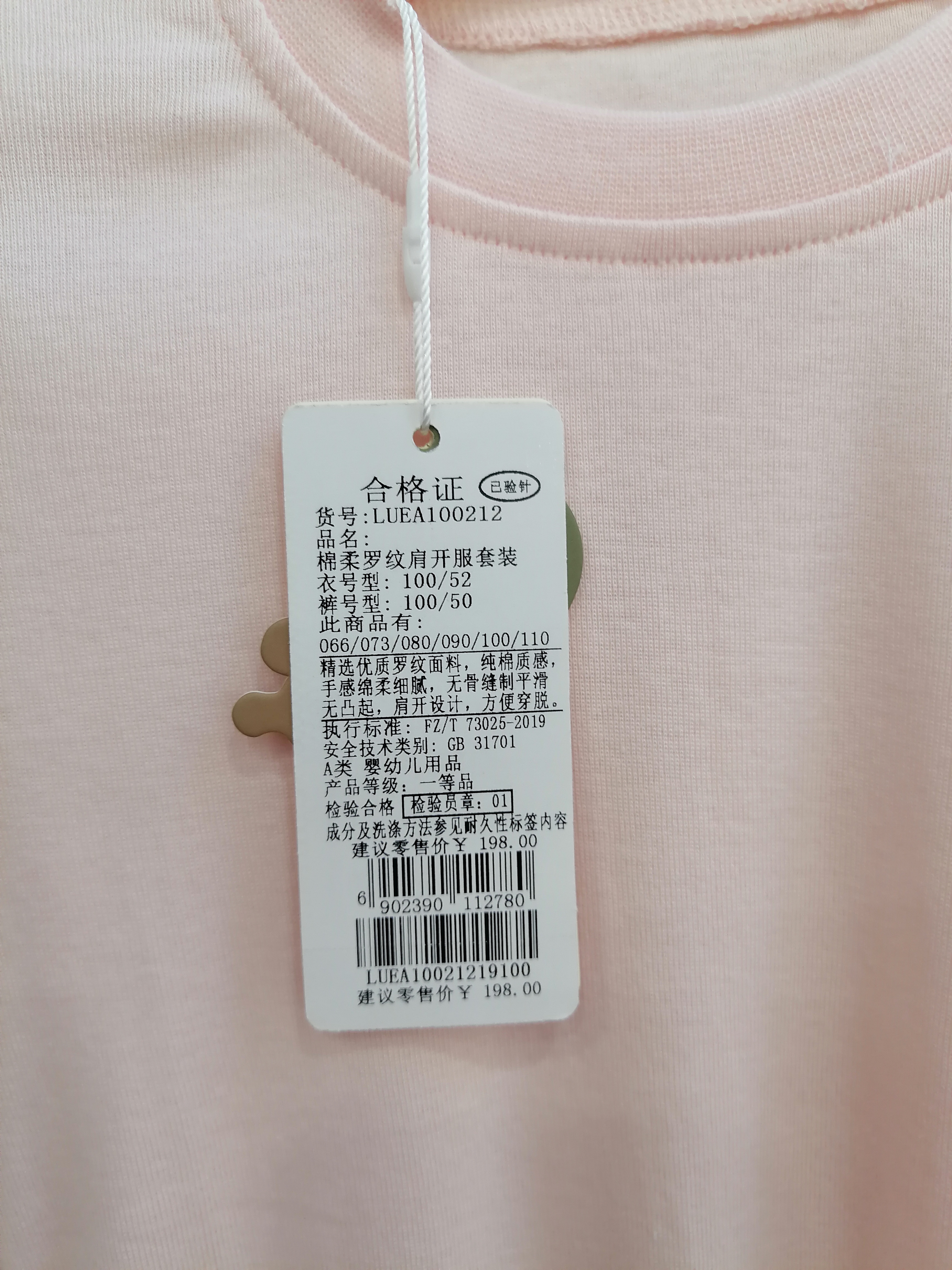 拉比内衣常年棉柔罗纹肩开服套装E1LUEA100212