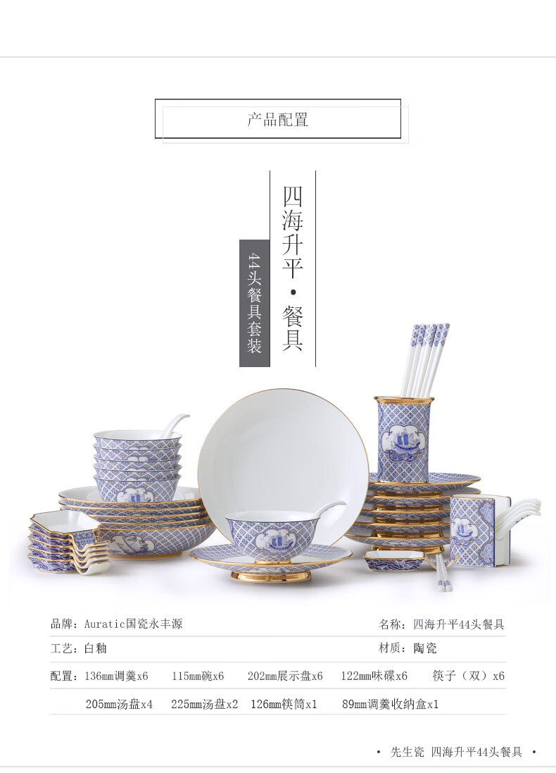【国瓷·永丰源】四海升平44头餐具