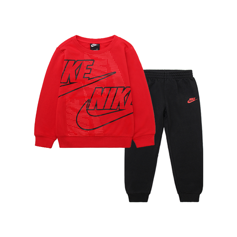 耐克-童衣类(春)F2小童套头无帽卫衣套装正黑色红