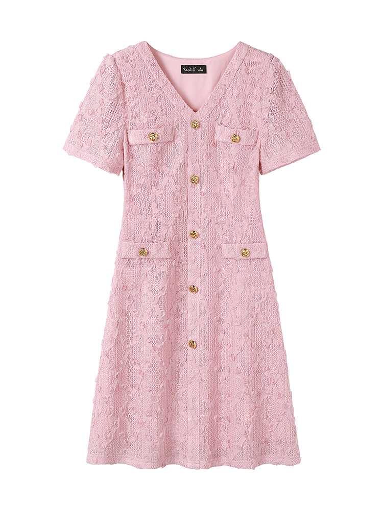 奢姿大码女装2025夏季气质V领连衣裙胖妹妹假口袋小香风时尚裙子9942860102