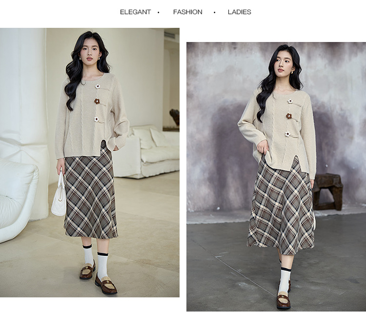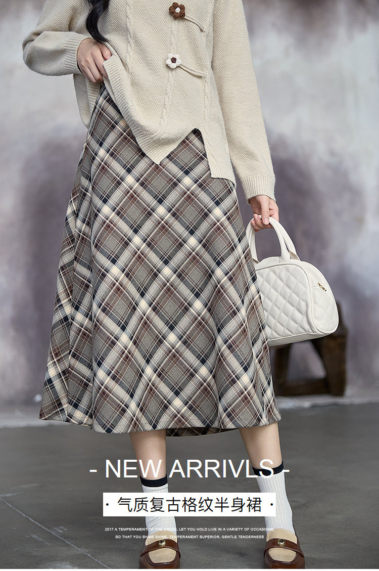 奢姿大码女装2025秋季气质复古格纹半身裙胖妹妹时尚经典风裙子9953335182