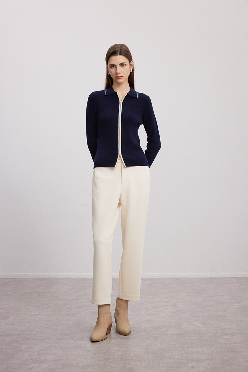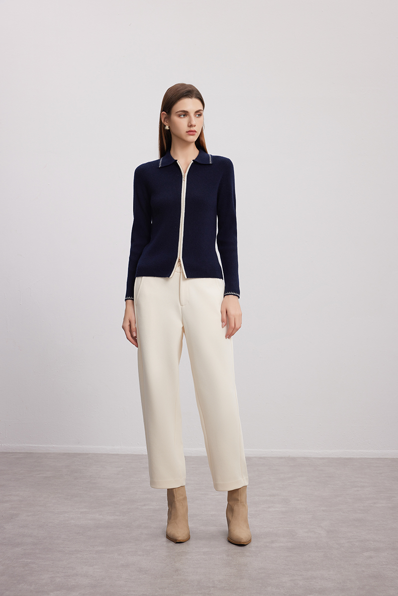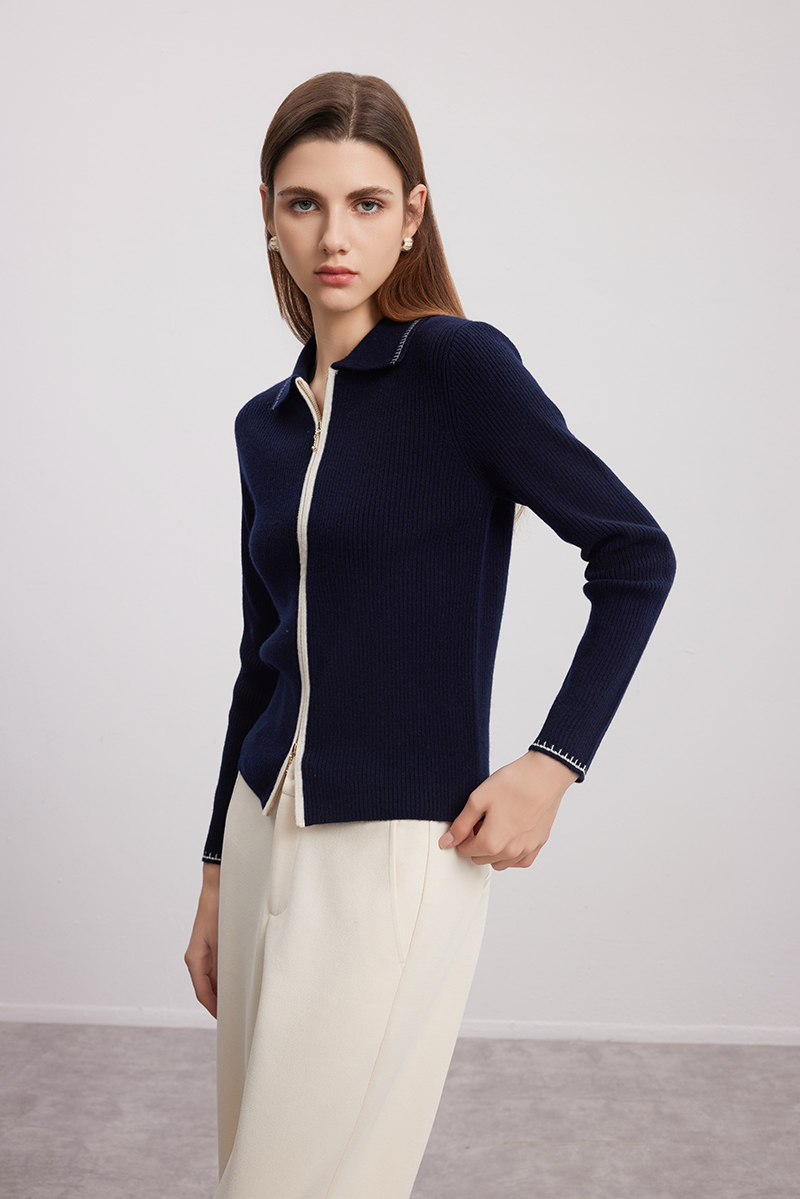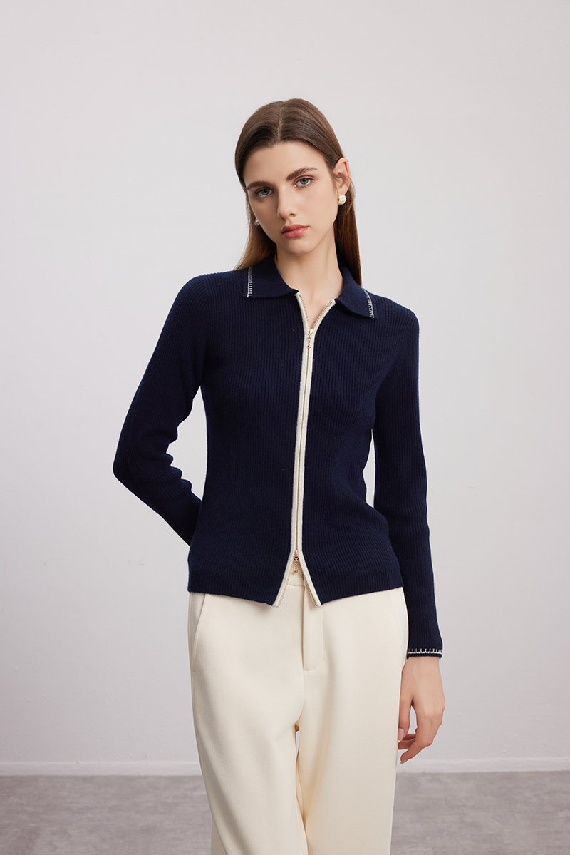 【坑条纹修身羊绒外套】羊绒世家秋冬新品女士100%山羊绒修身显瘦外套