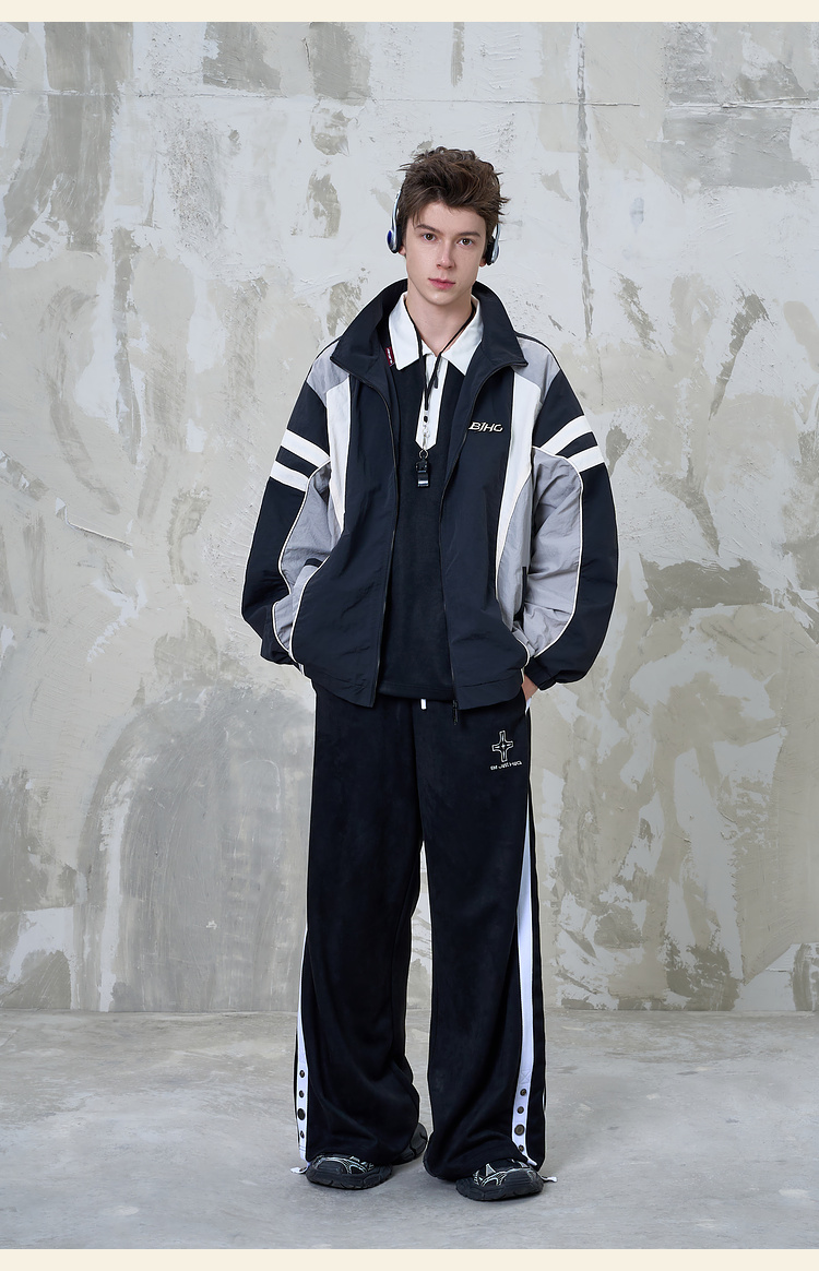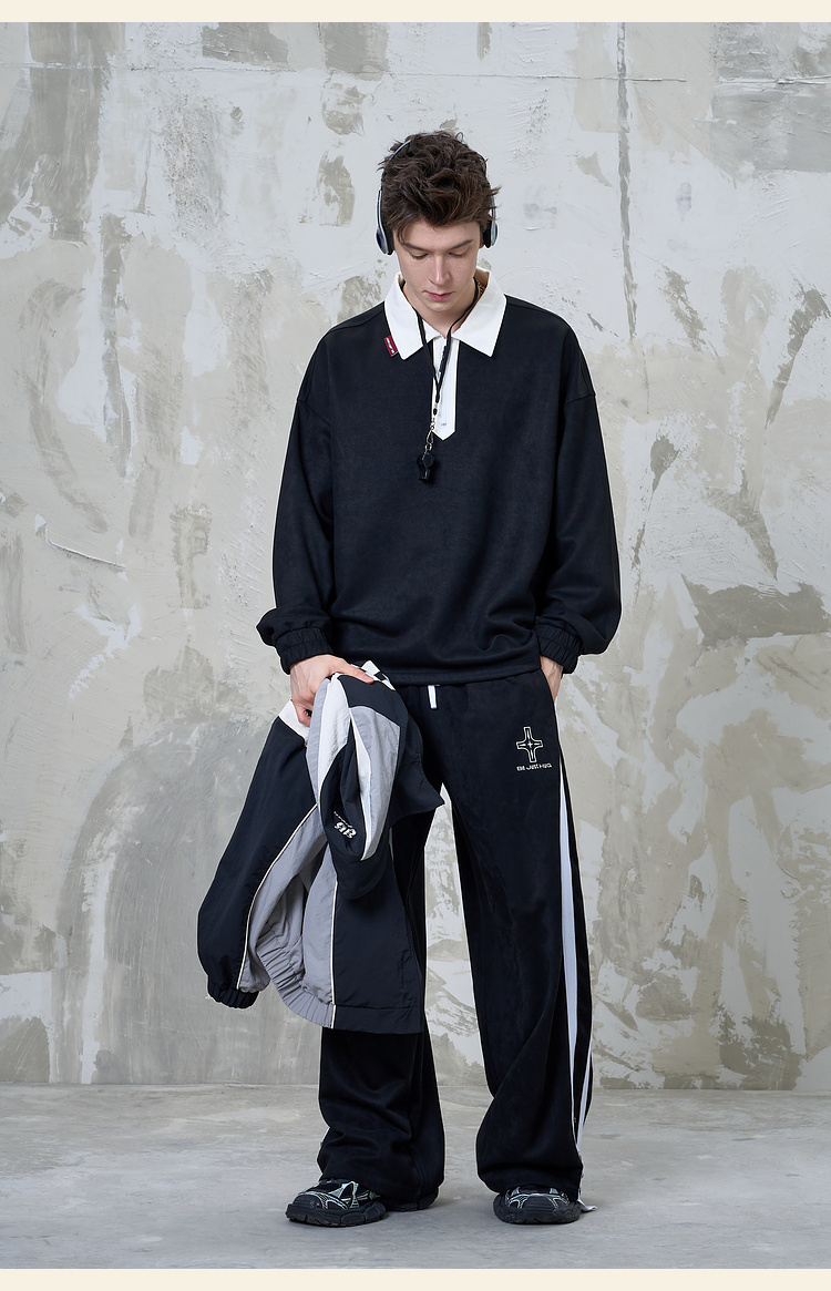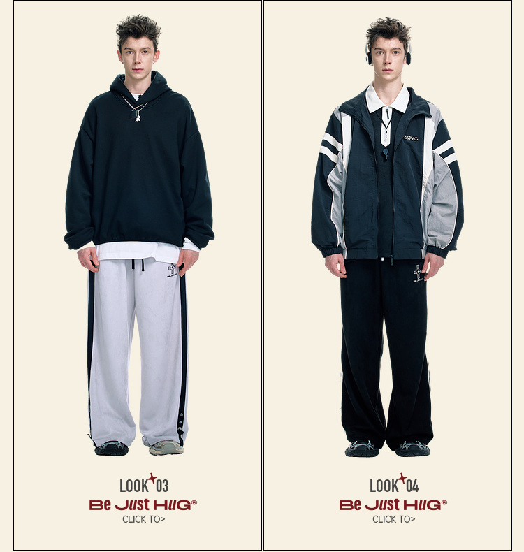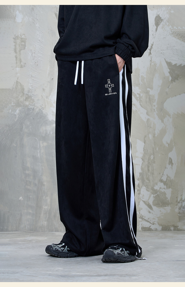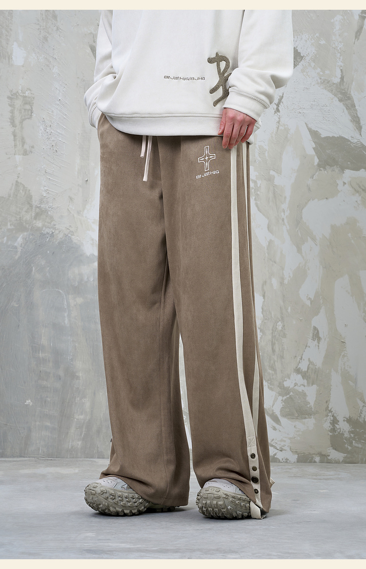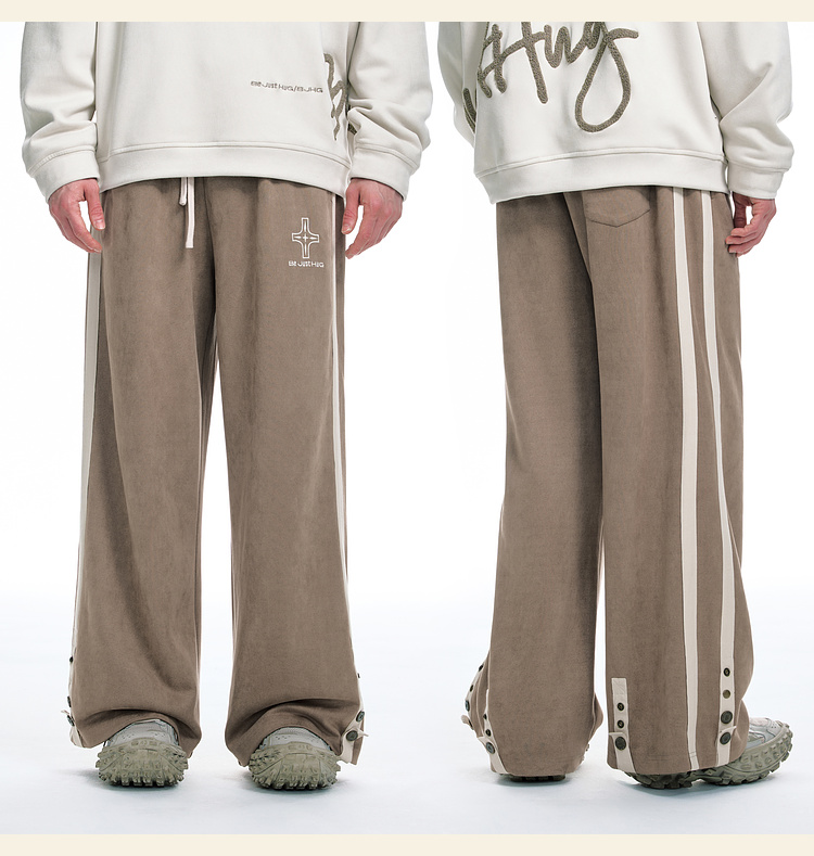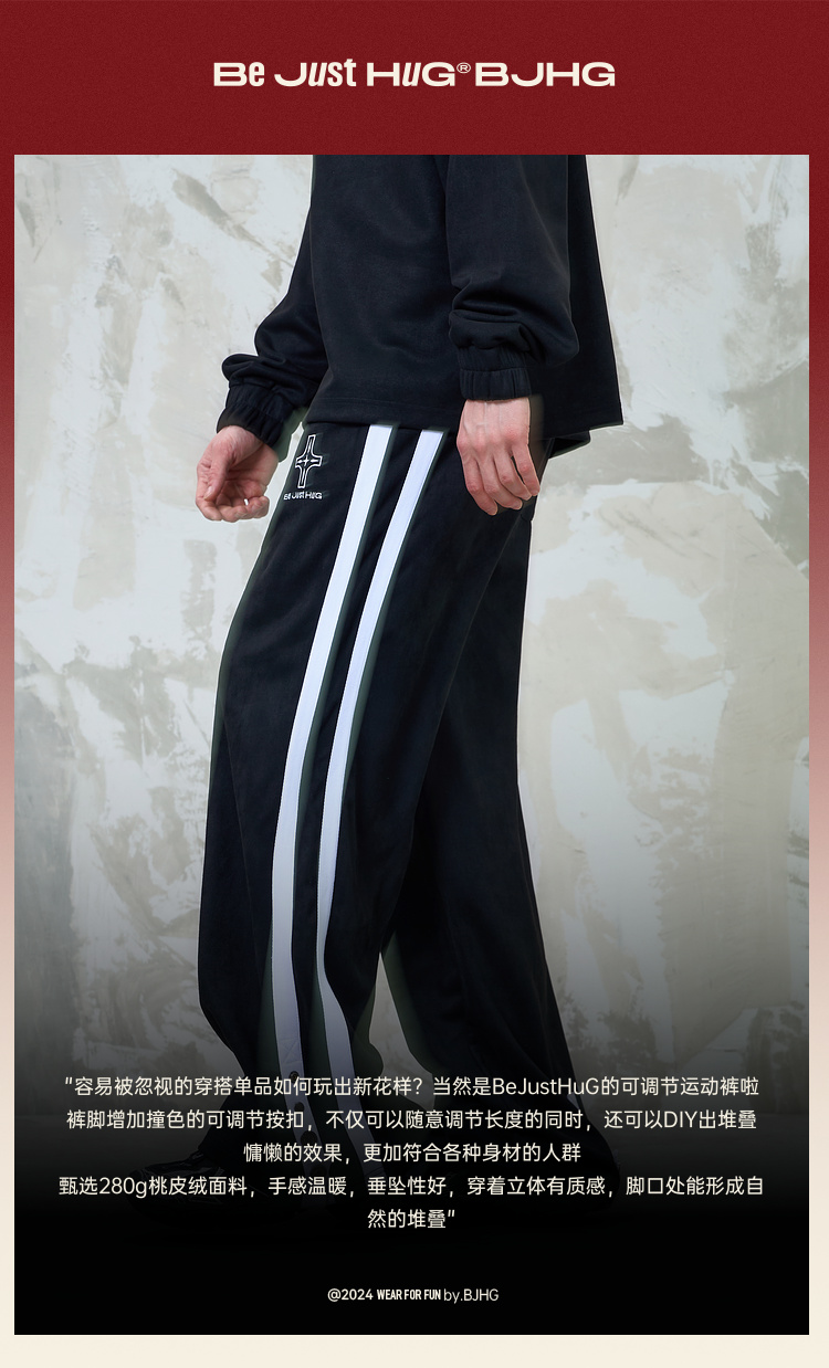 BJHG不计后果美式休闲裤子男款春秋2025新款桃皮绒直筒宽松运动裤