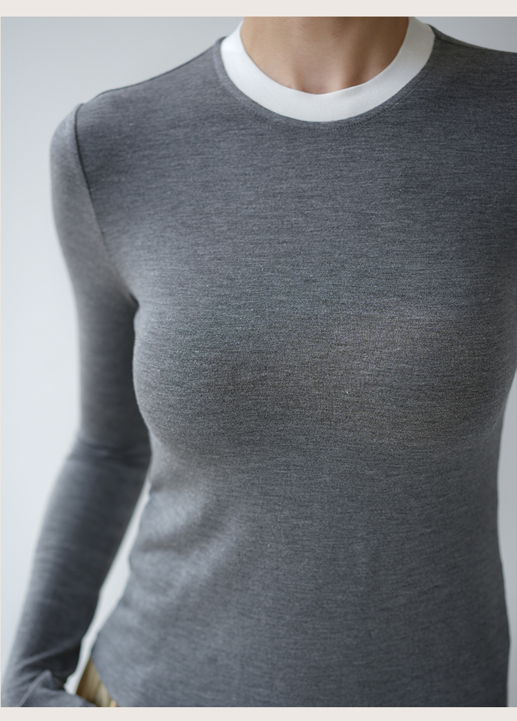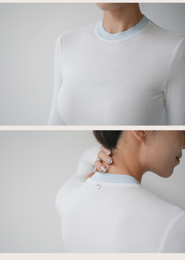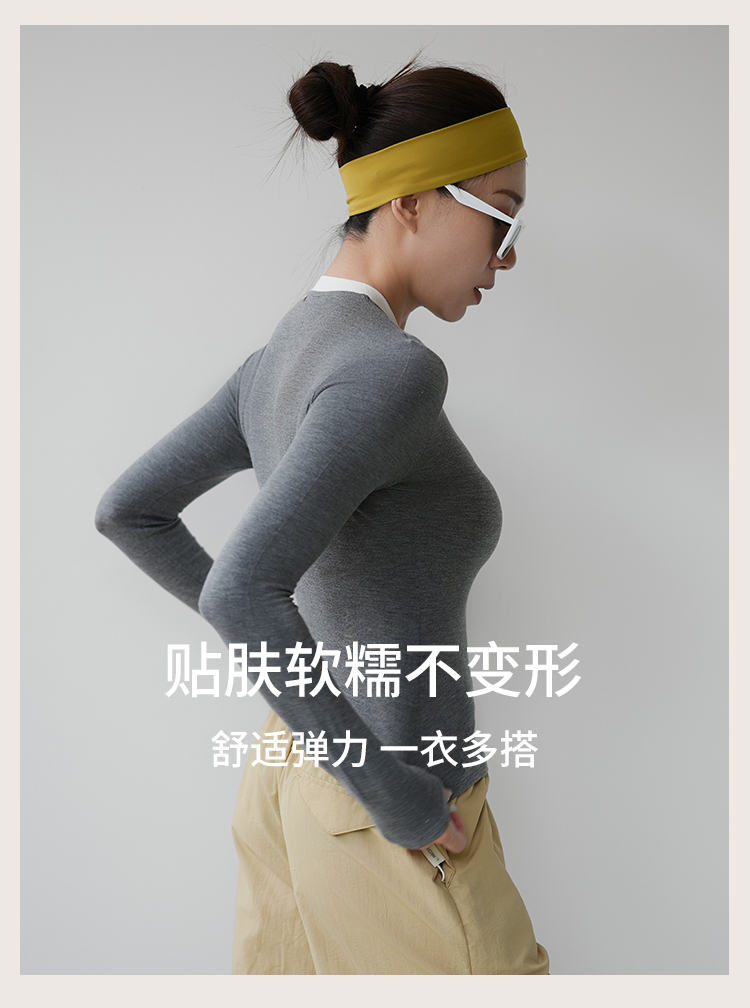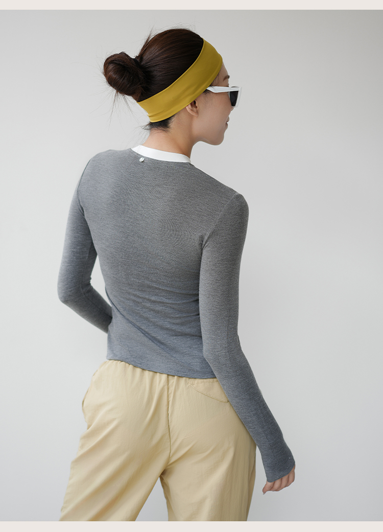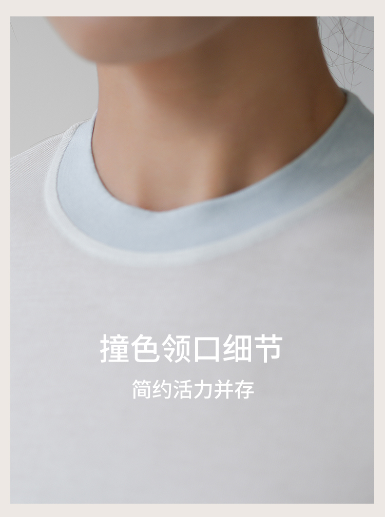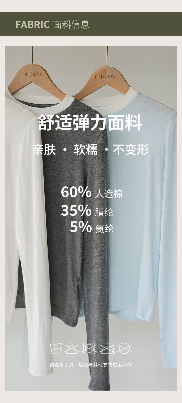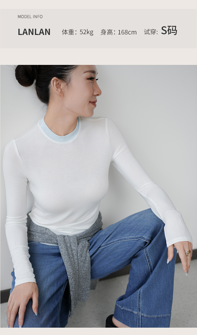 L RECNAVA 撞色领口假两件长袖 亲肤软糯 弹力不变形人棉打底衫