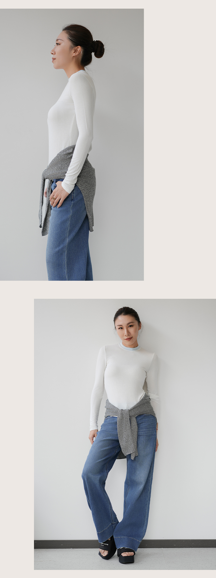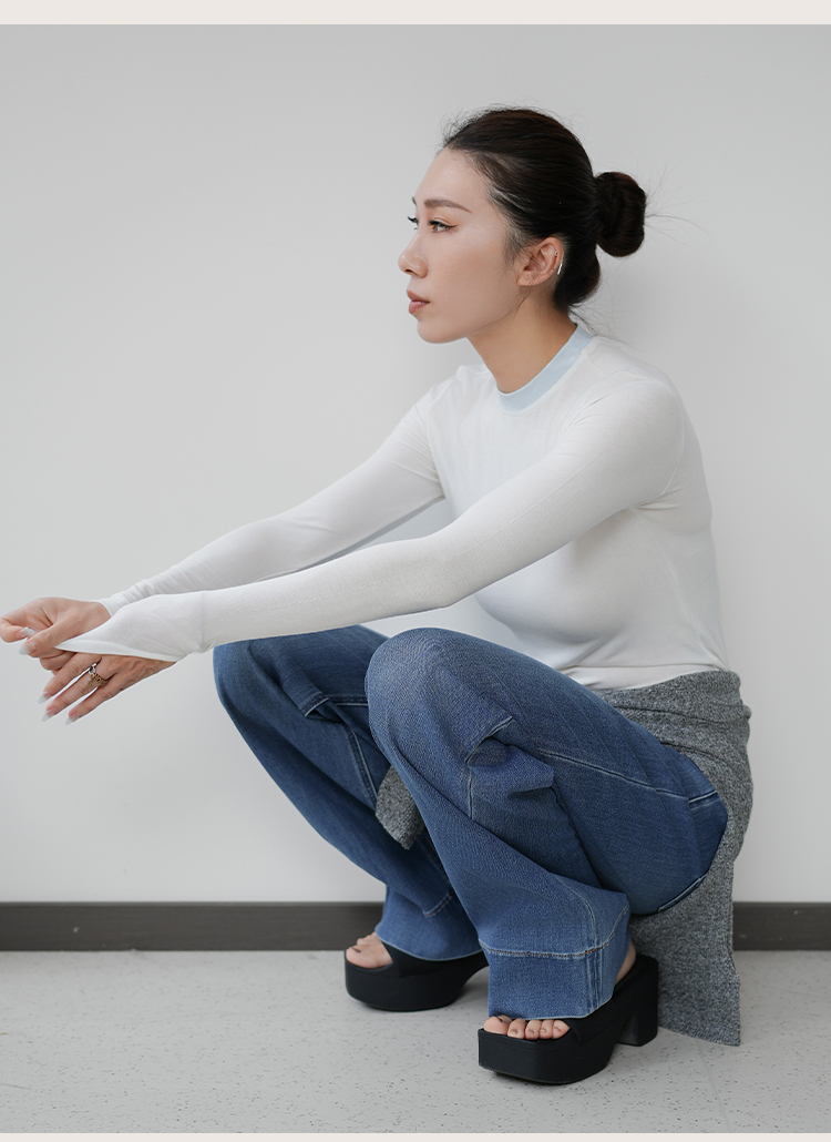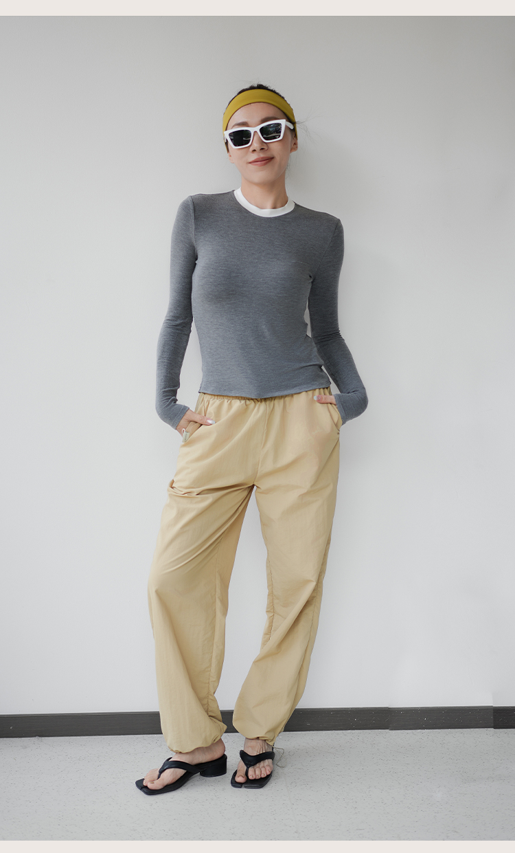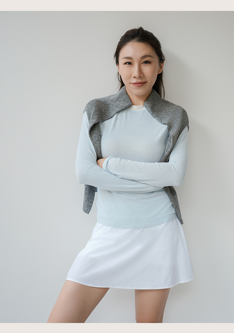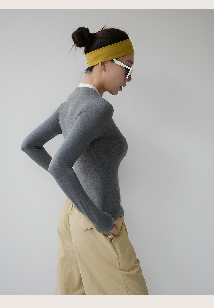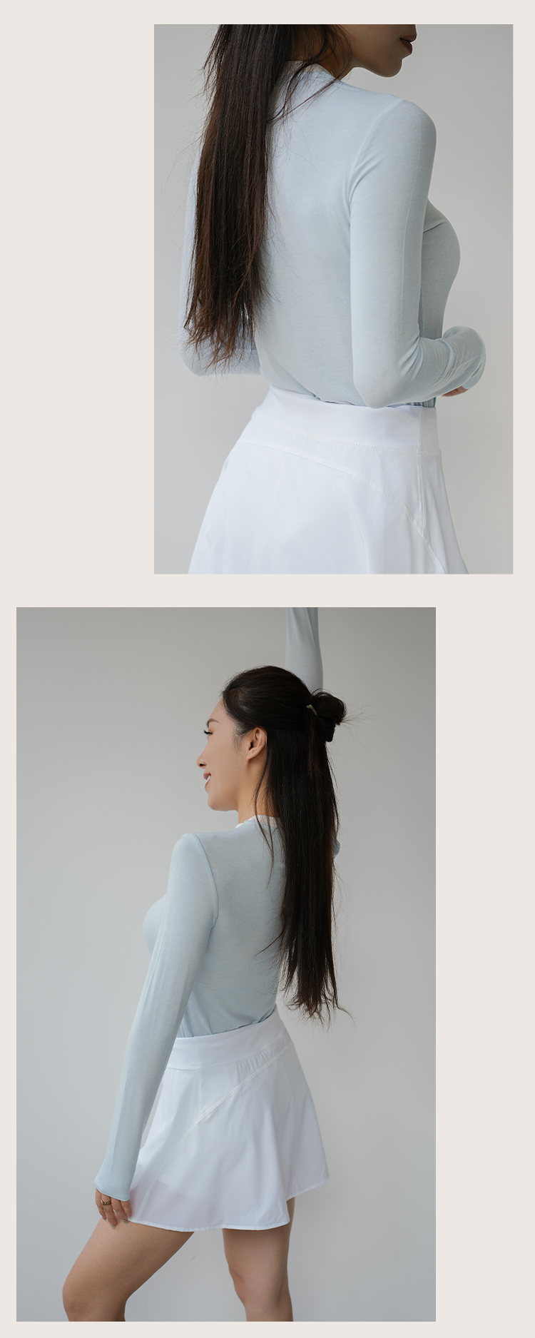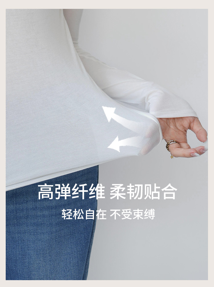 L RECNAVA 撞色领口假两件长袖 亲肤软糯 弹力不变形人棉打底衫