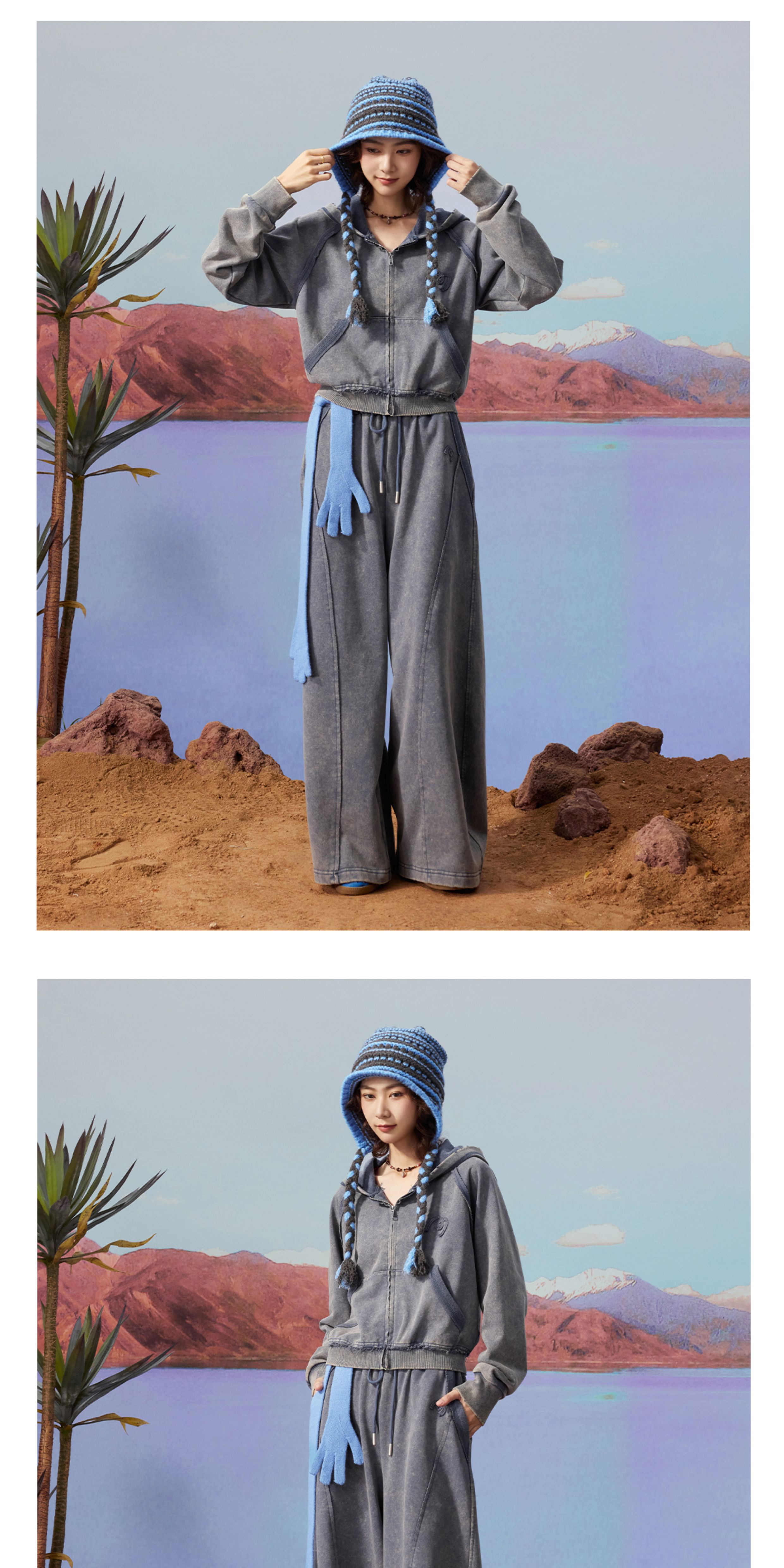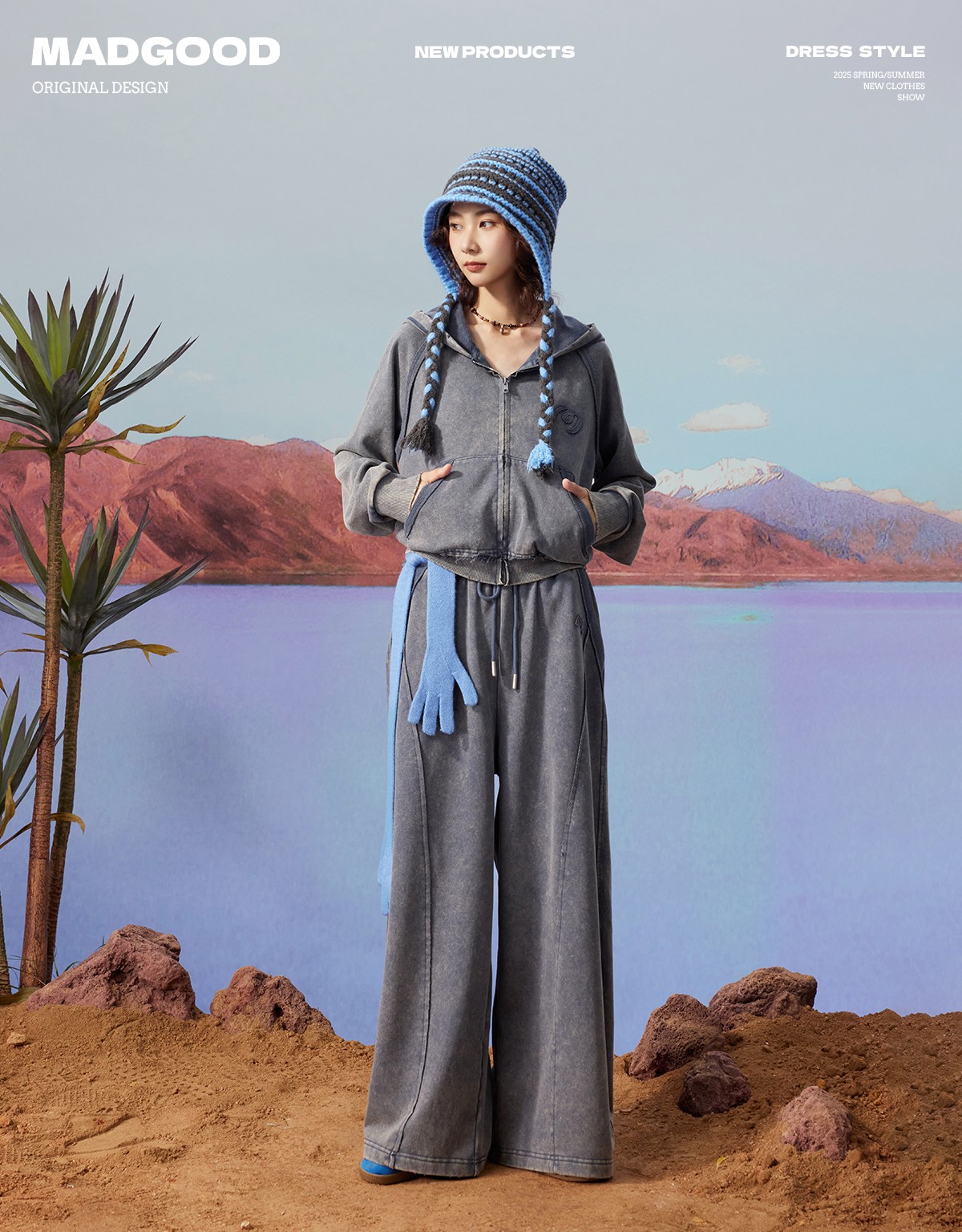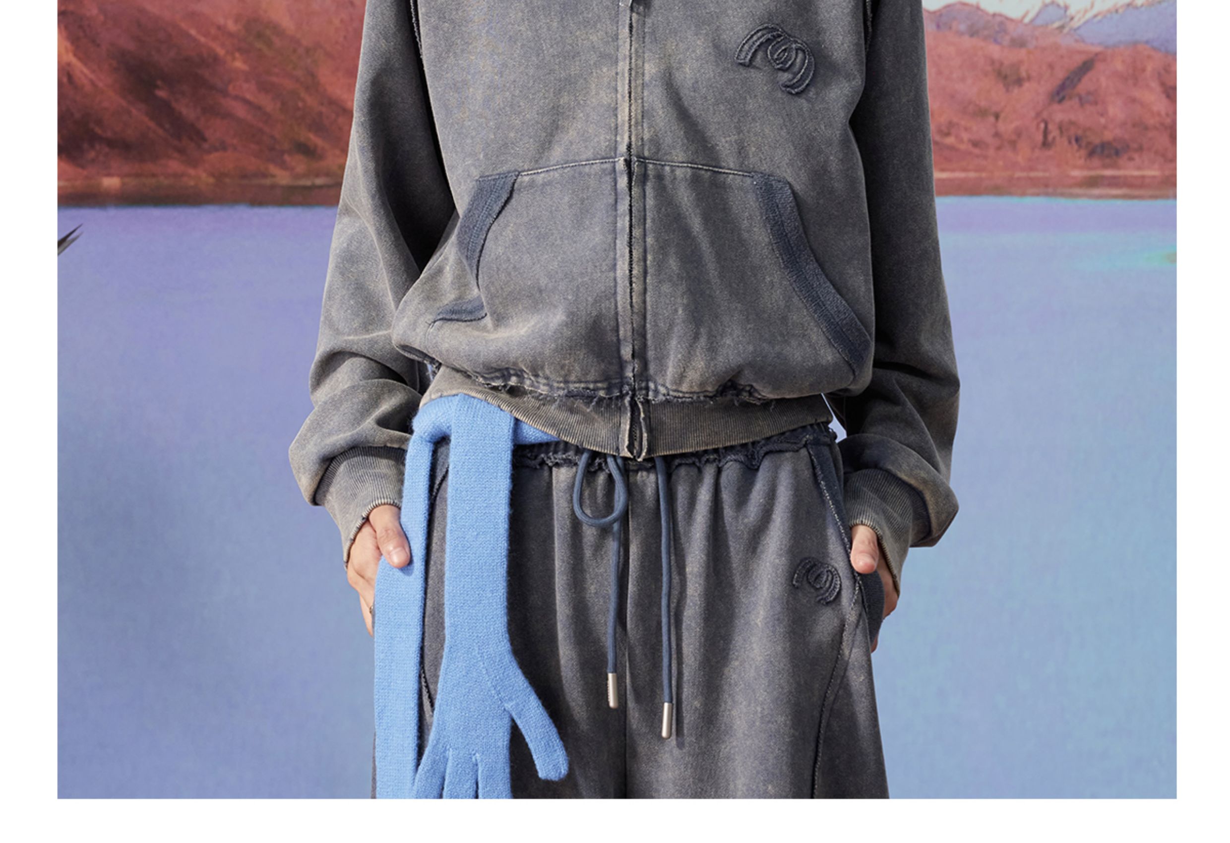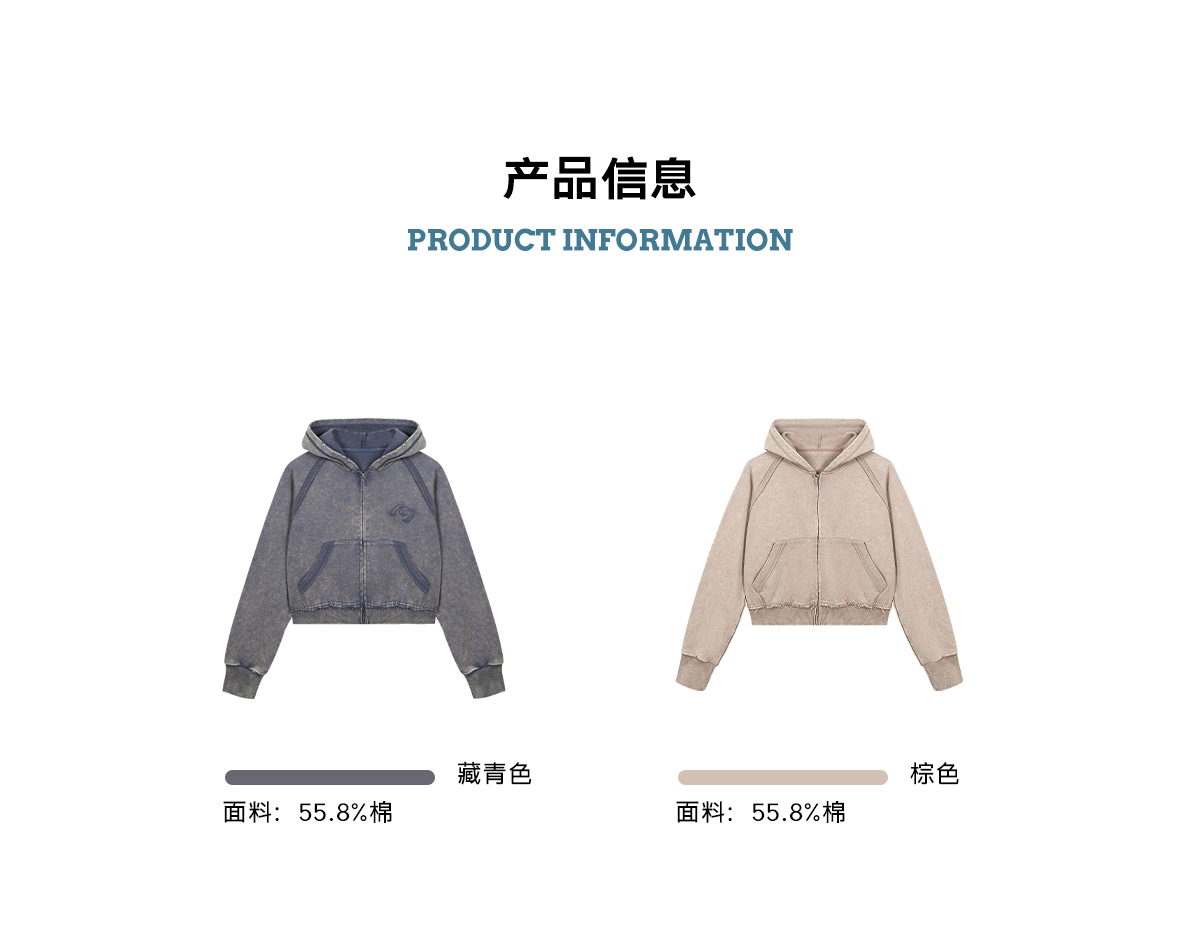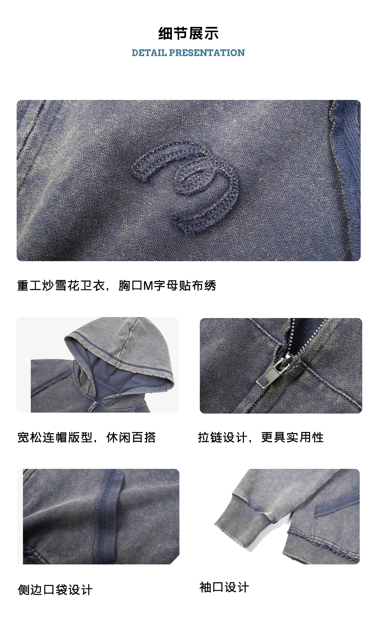 马得工地/MDGDWY13107/水洗贴布绣卫衣连帽开衫