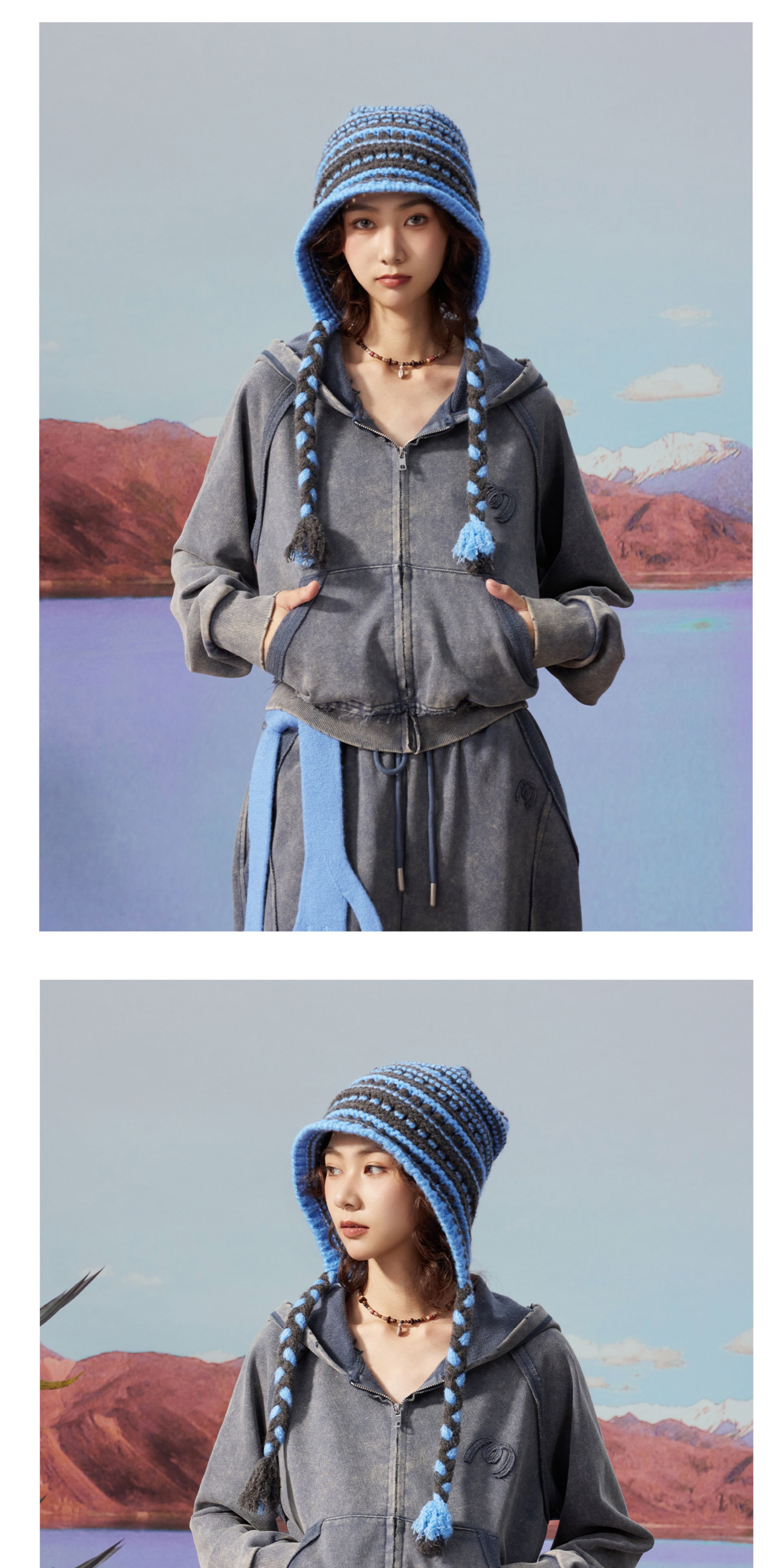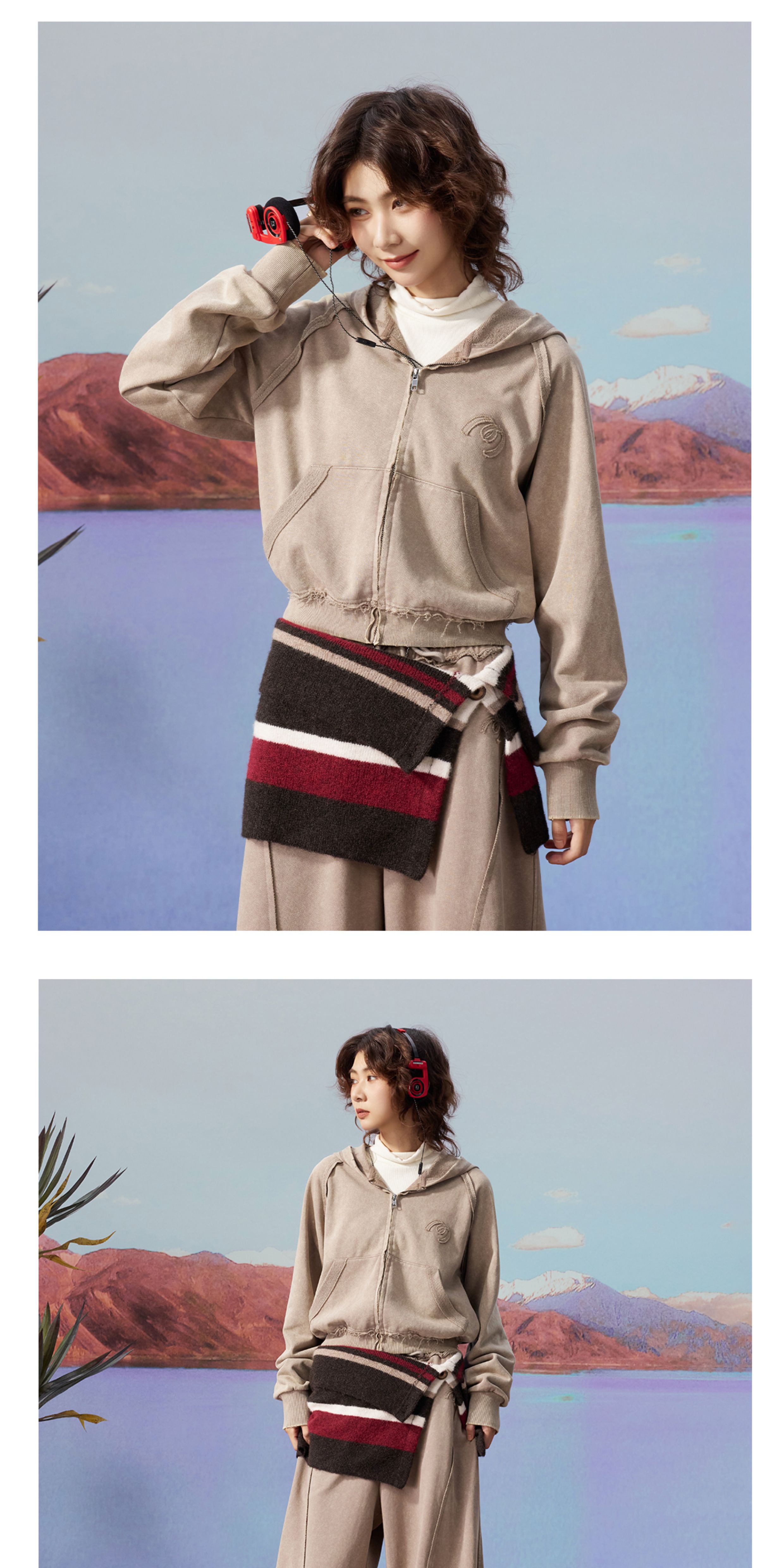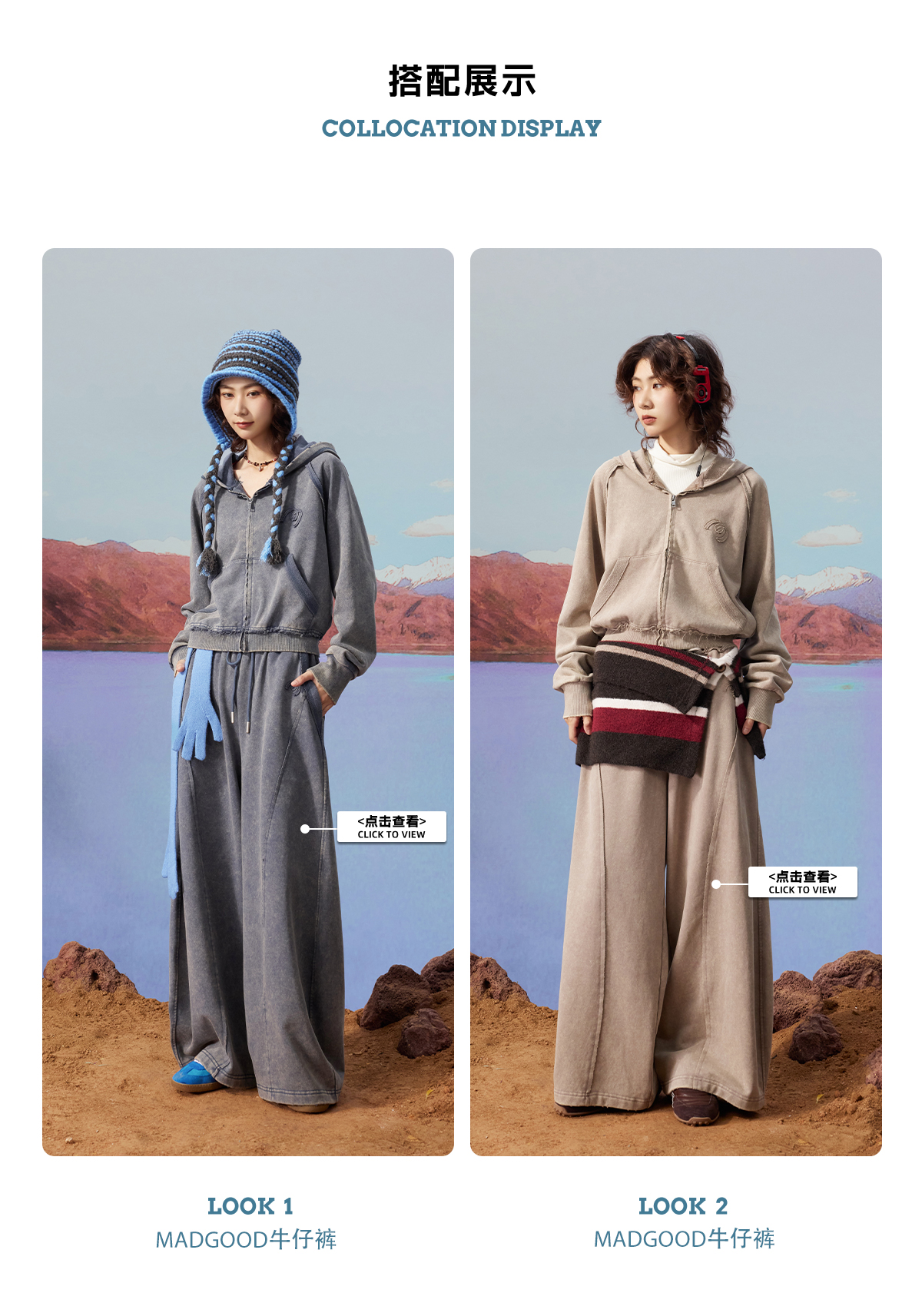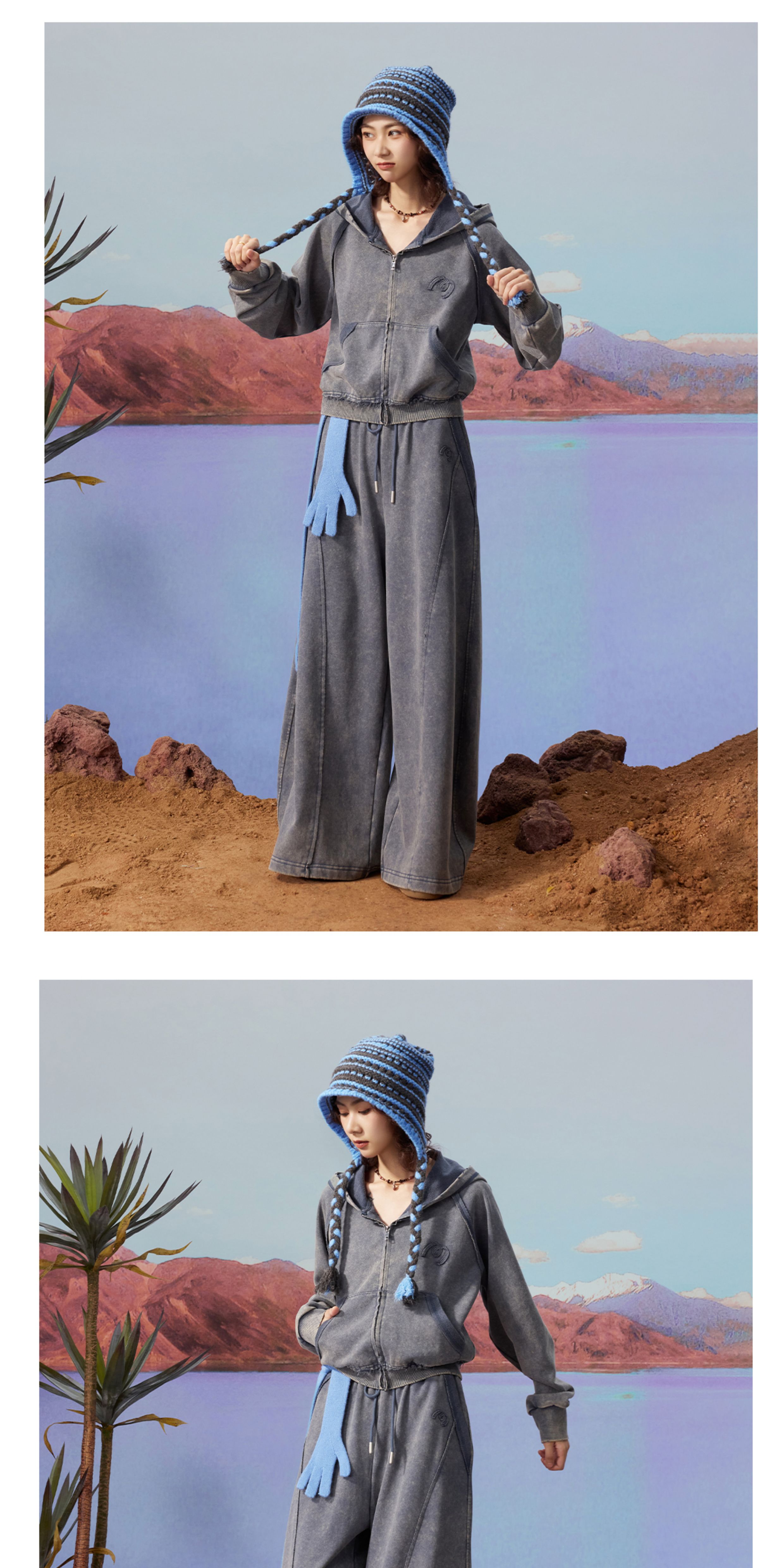 马得工地/MDGDWY13107/水洗贴布绣卫衣连帽开衫