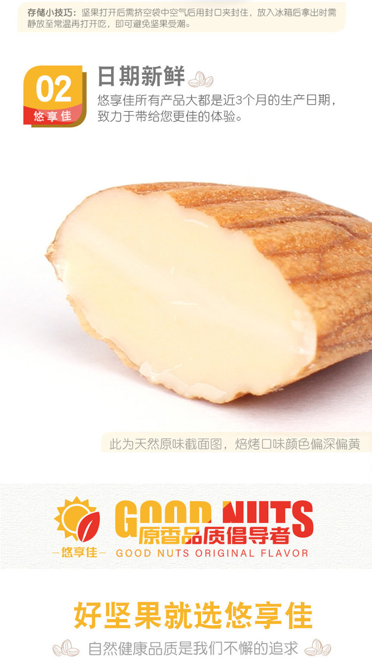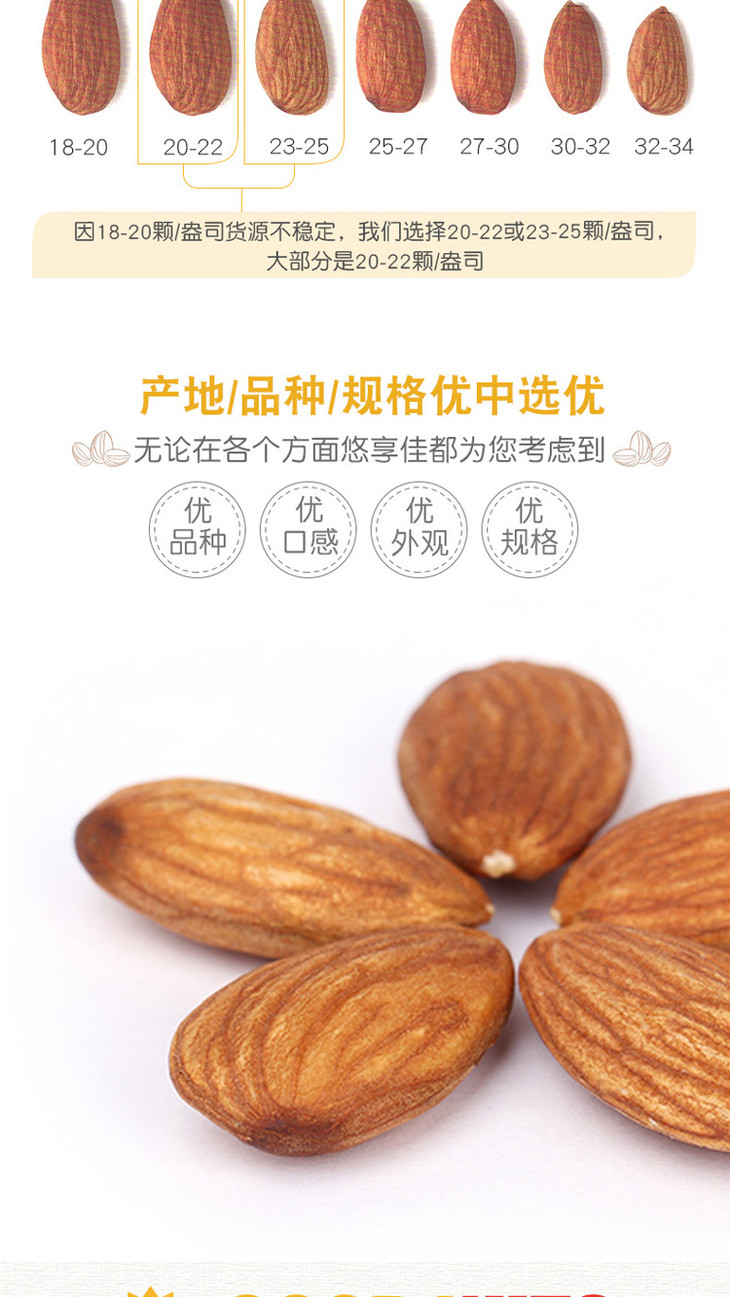 巴旦木仁500g原味盐焗孕妇零食扁桃仁烘焙烤炒货生熟干坚果 悠享佳