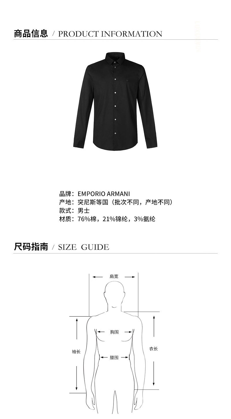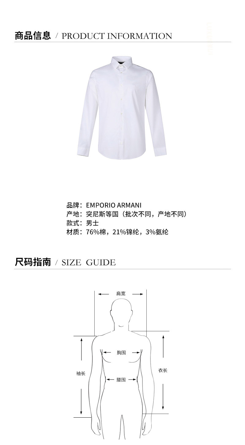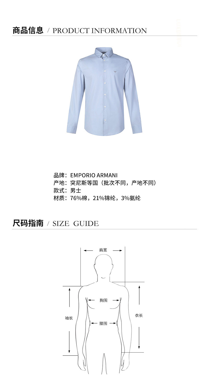 Emporio Armani/安普里奥阿玛尼【22春夏新款】男士棉质长袖衬衫 8N1C09 1NI9Z
