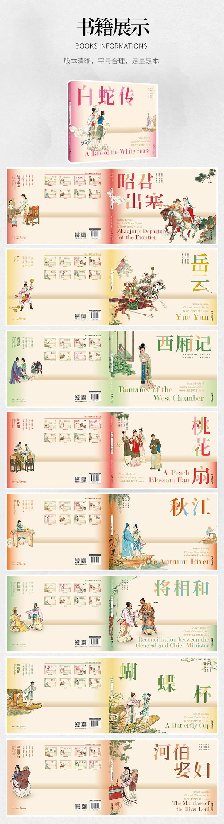 【经典中国故事绘本组合装】共9册 昭君出塞 岳云 西厢记 桃花扇 秋江 将相和 蝴蝶杯河伯娶妇 白蛇传连环画 赏读经典让孩子懂得真与善