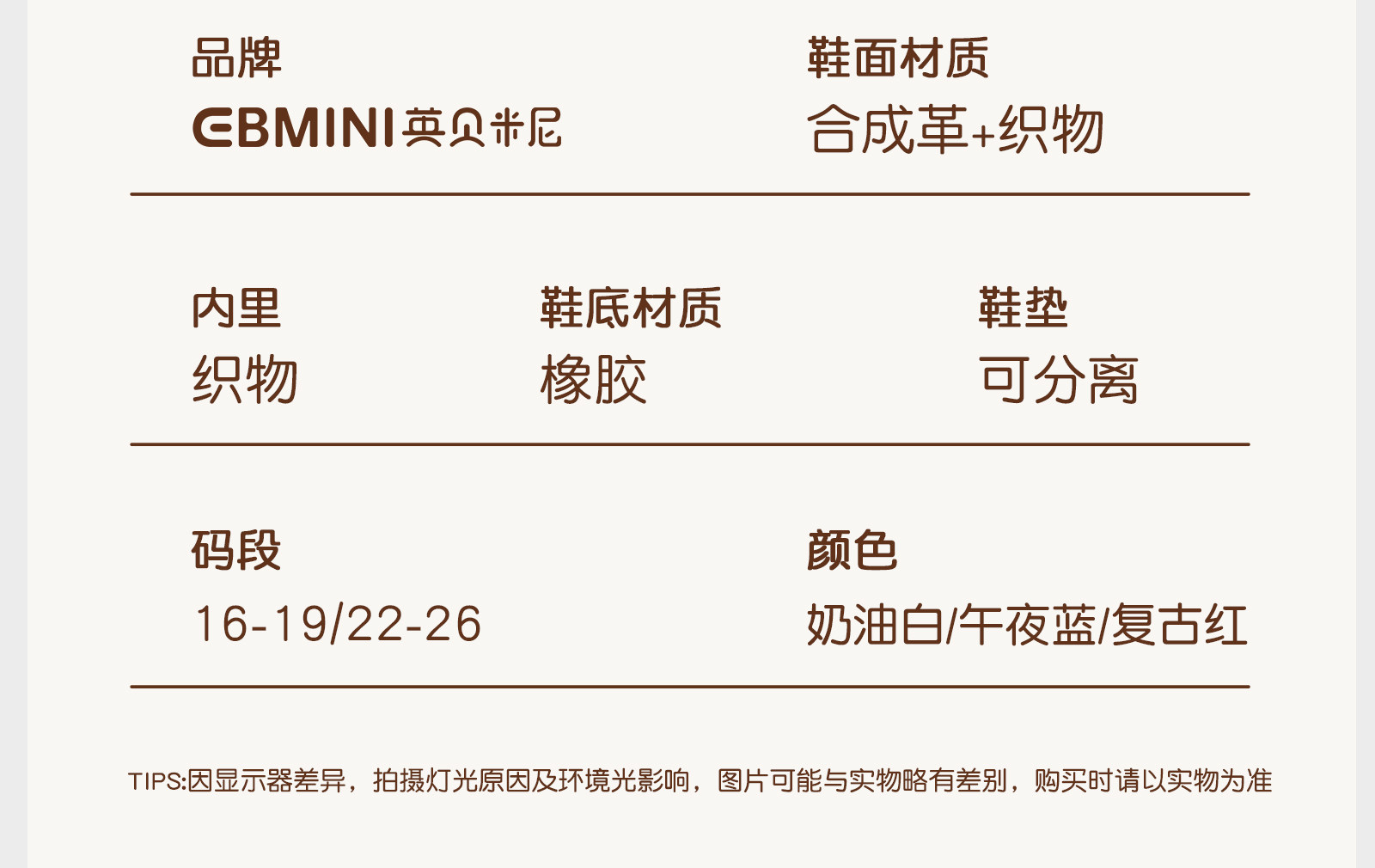 EBMINI英贝米尼宝宝学步鞋2026春季新款百搭男童德训鞋女童室内儿童鞋子16-24
