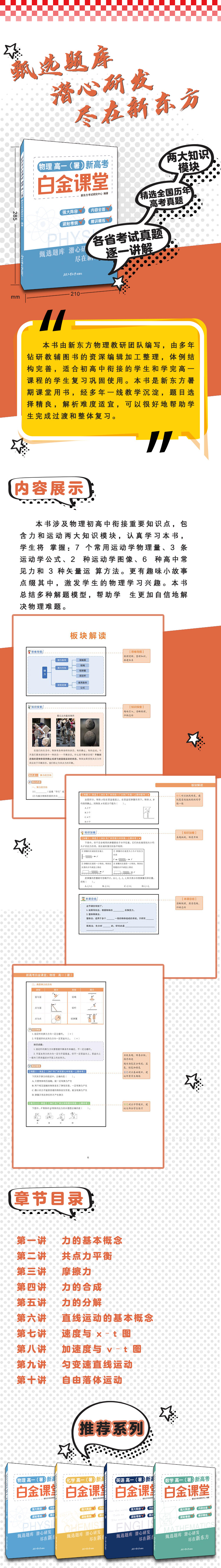 本书涉及物理初高中衔接重要知识点,包含力和运动两大知识模块,认真学习本书,学生将掌握:7个常用运动学物理量、3条运动学公式、2种运动学图像、6种高中常见力和3种矢量运算方法。更有趣味小故事点缀其中,激发学生的物理学习兴趣。本书总结多种解题模型,帮助学生更加自信地解决物理难题。